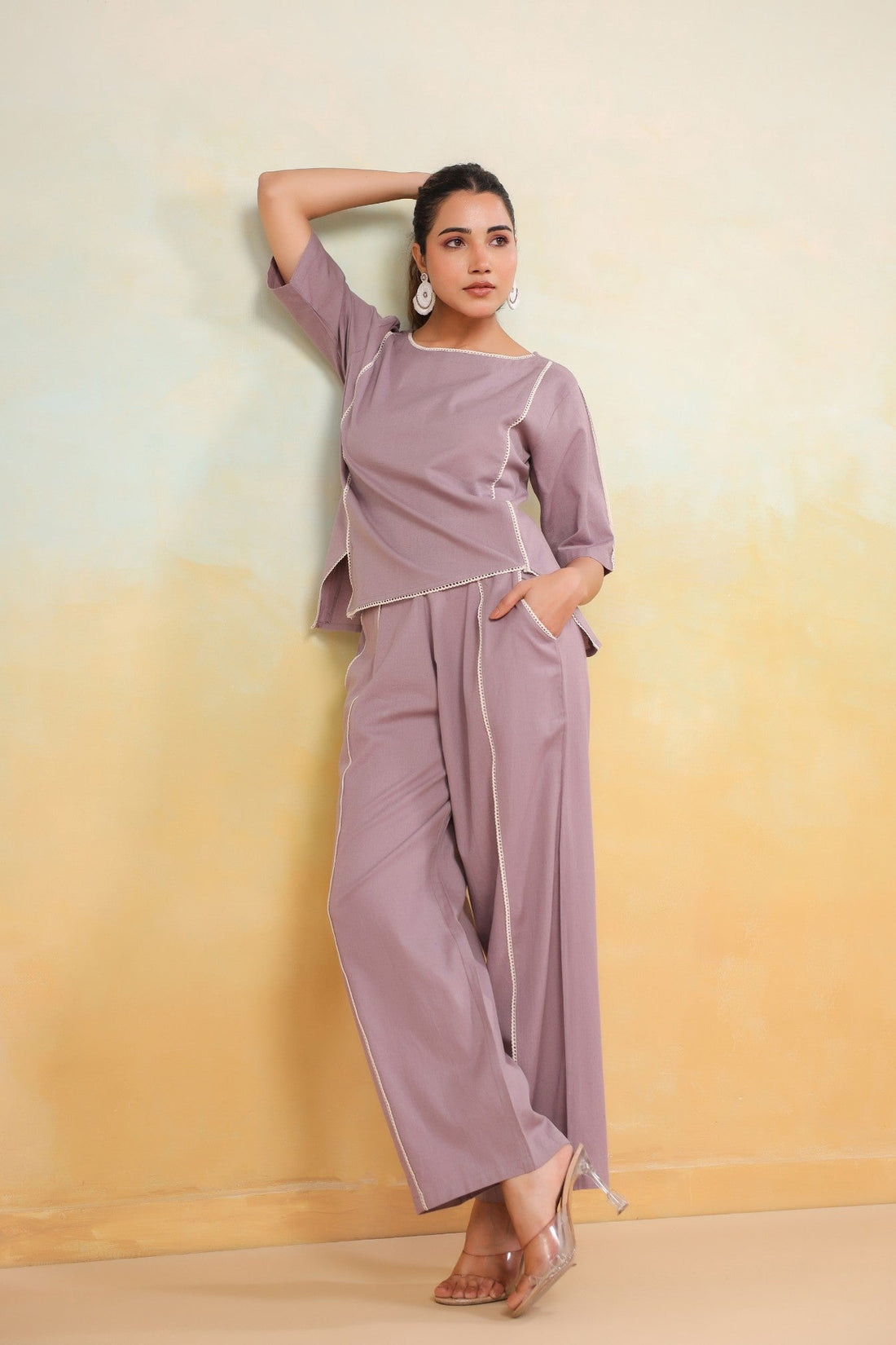 Serene Elegance – Mauve Cotton Co-Ord Set