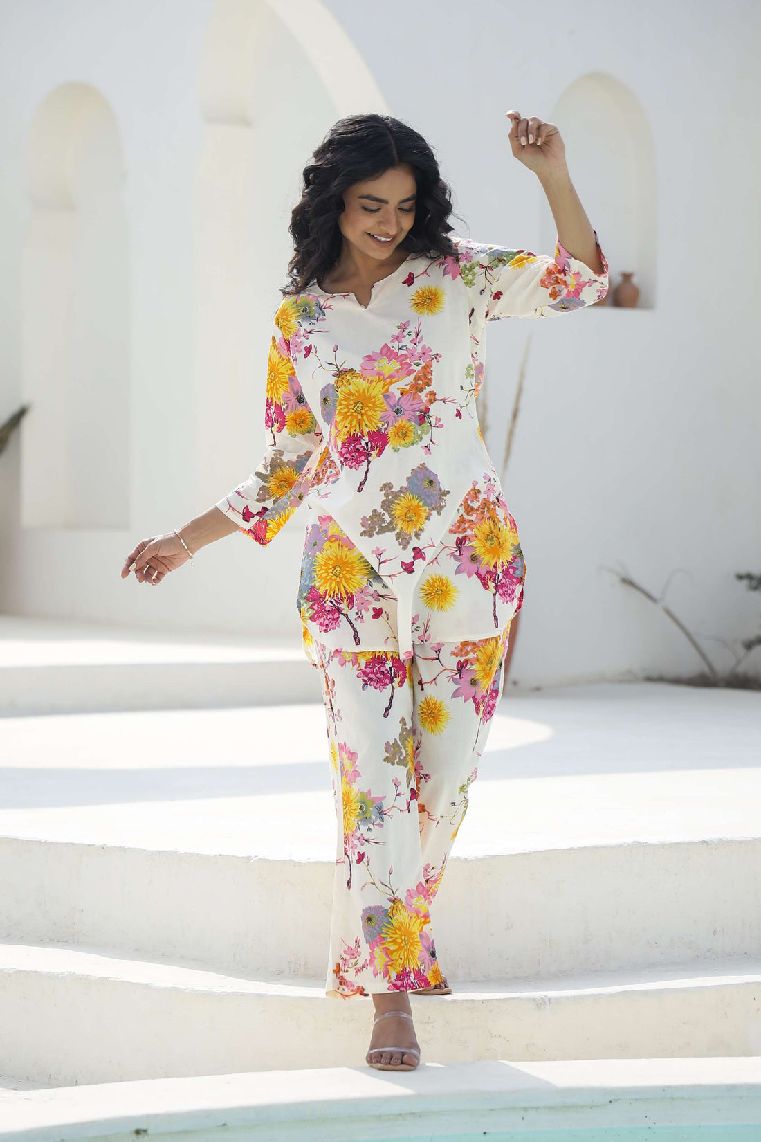 Ivory Floral Printed Cotton Co-ord Set