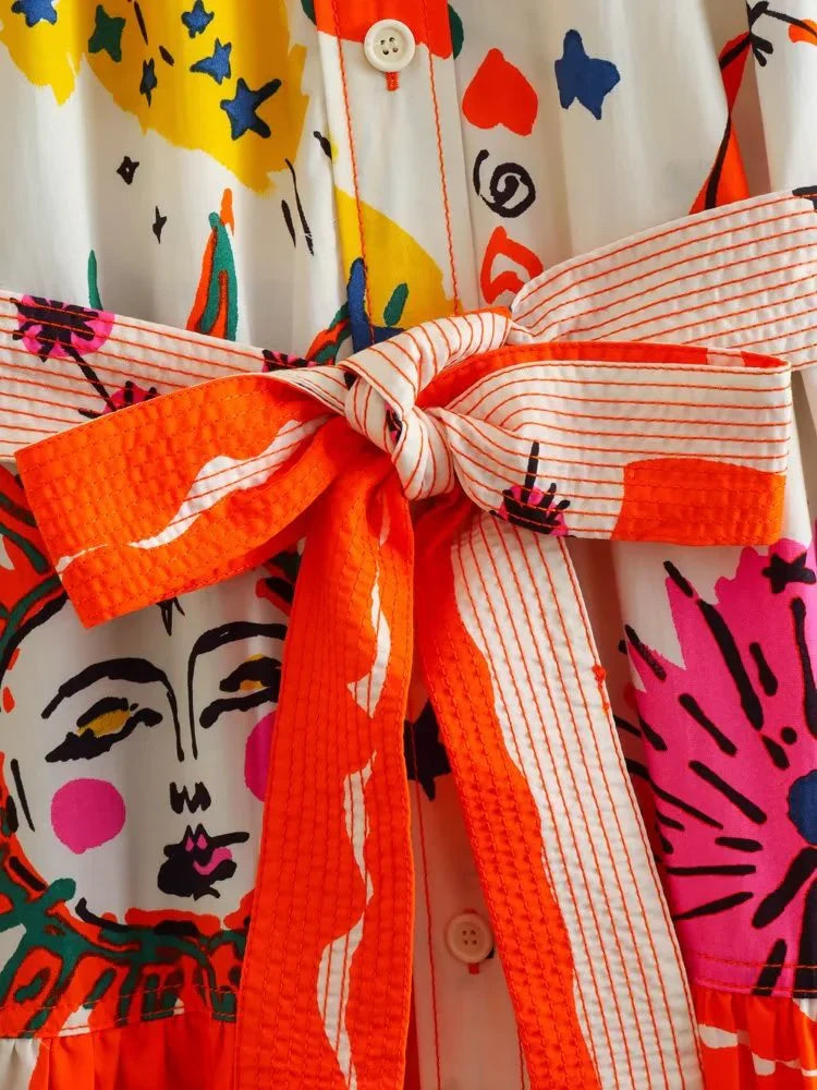 Unleash your inner bohemian with the Abilene Printed Dress. This Long Midi dress features a waist belt and a stunning bohemian print, making it a show-stopper for any occasion. Made of a cotton blend, the loose fit and midi length guarantee comfort and style all year round. Perfect for day events, evening gatherings, and vacation looks.