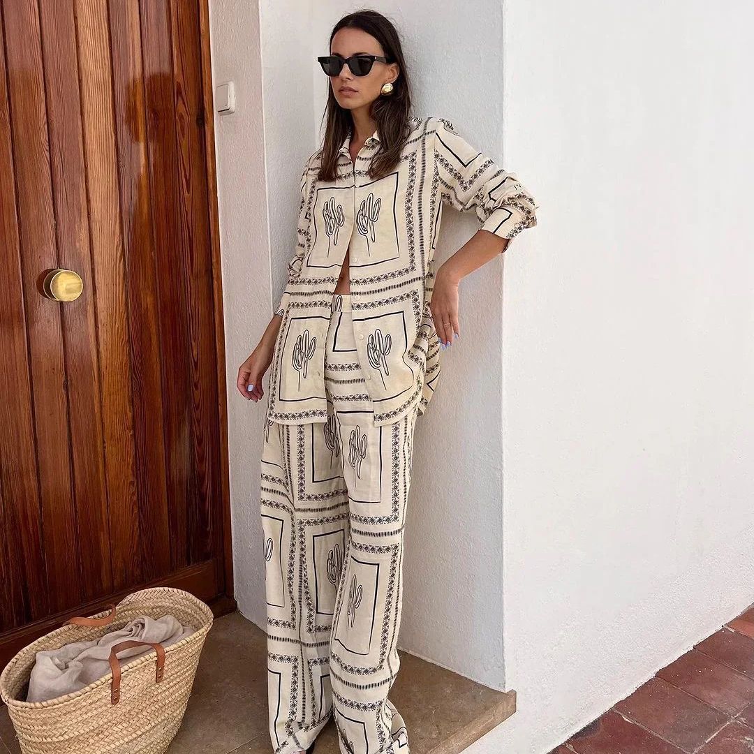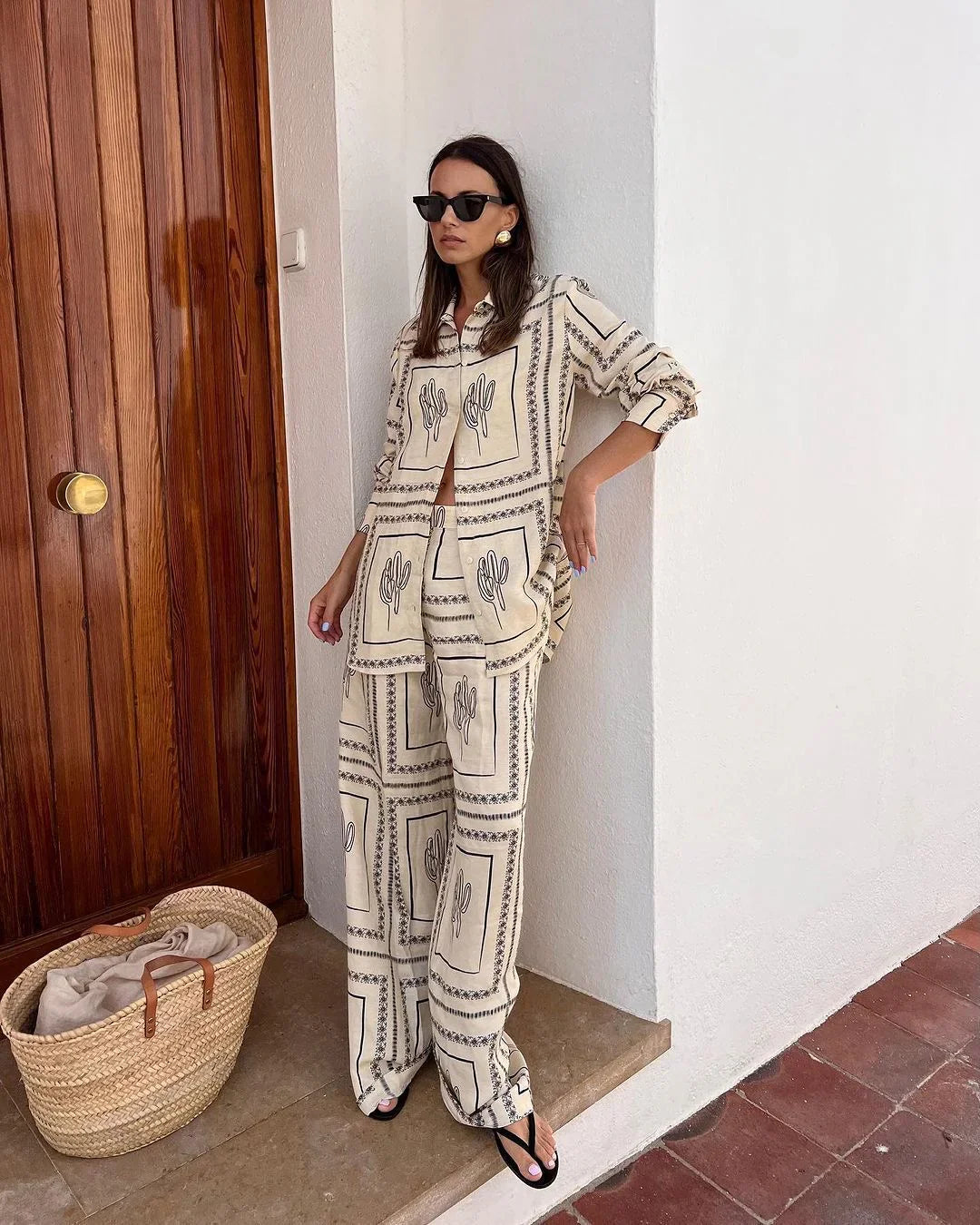 Elevate your style with our Acatzin Printed Co-ord Set. Featuring a bohemian print and classic collar, this set is a year-round essential for any occasion. Made of a comfortable cotton blend, the buttoned down long blouse adds a touch of sophistication to the overall aesthetic. Don't miss out on this show-stopping set