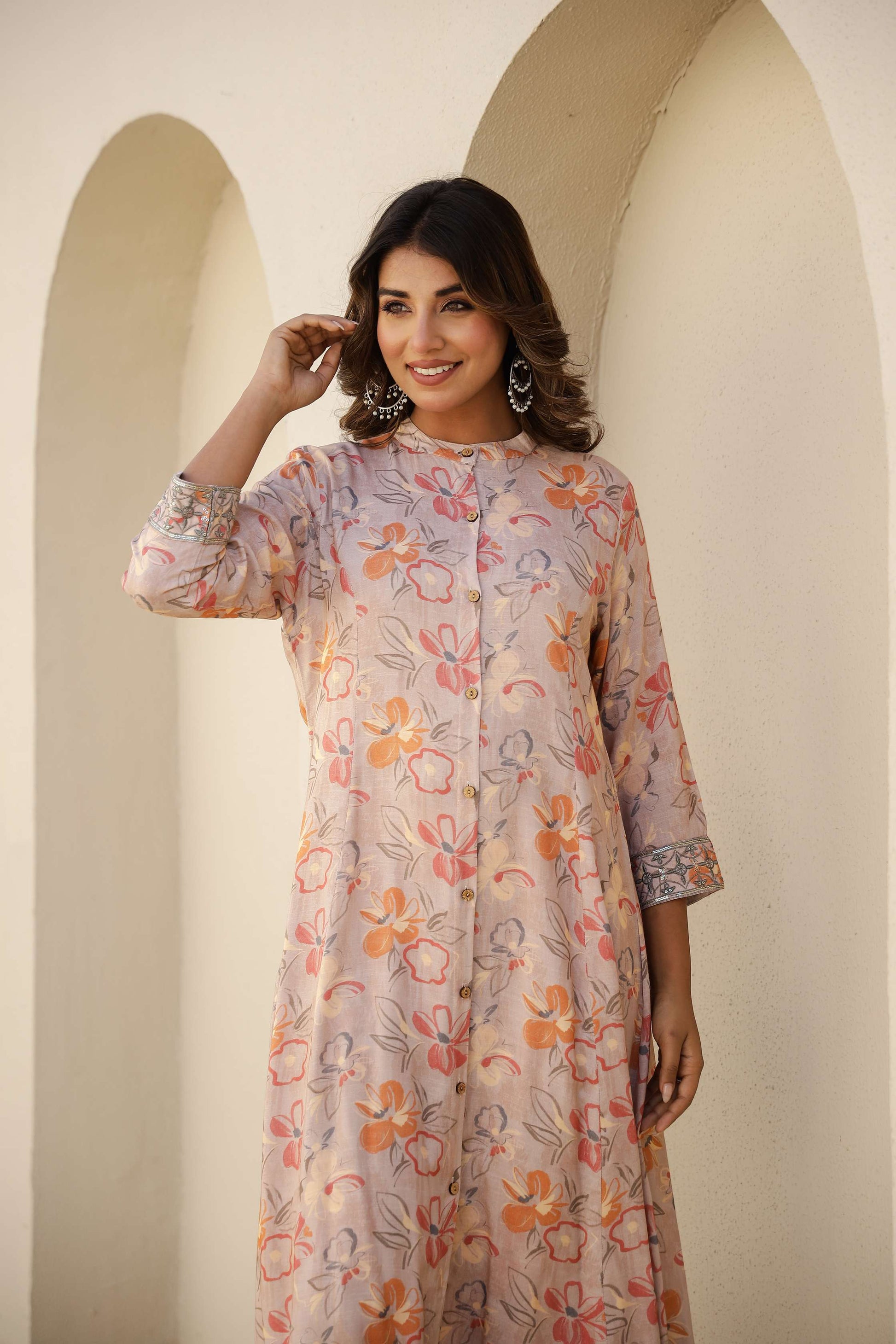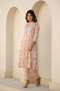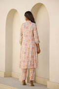 Graceful and soothing, this peach floral printed kurta set is a must-have for your wardrobe. The soft pastel hue with delicate floral prints makes it perfect for both day events and evening get-togethers. Comes with straight pants for a coordinated look.