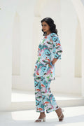 Crafted from soft, breathable cotton, the set includes a relaxed-fit tunic top with 3/4 sleeves and matching straight-leg pants. Whether you’re heading to brunch, a beachside vacation, or simply embracing bold everyday fashion, this co-ord is your perfect go-to.