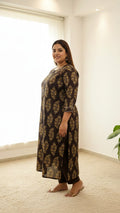 Make a striking statement with this unique Print Kurta. This piece is designed to be a standout addition to your wardrobe, effortlessly blending contemporary art with comfortable fashion.