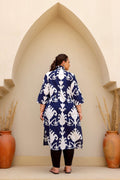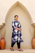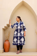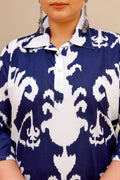 Elegant Plus Size Blue & White Ikat Print Kurti – Classic Comfort for Everyday Style