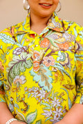 Vibrant Yellow Floral Print Plus Size Kurti – Bright & Breezy Everyday Wear