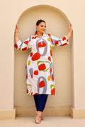 Stand out in style with this eye-catching white kurti adorned with a vibrant abstract print. Perfect for the bold and fashion-forward, this kurti offers a roomy fit for comfort while making a confident statement. Great for daywear, brunches, or casual Fridays.