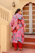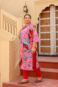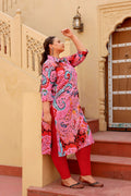 Make a fierce fashion statement with this kurti featuring an energetic blend of pink, red, teal, and orange in a bold paisley print. Designed for the confident woman who loves to stand out, this kurti combines comfort with head-turning style.