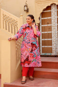 Bold Pink Paisley Plus Size Kurti – Artistic & Vibrant Elegance