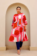 Bold Geometric Print Cotton Kurti in Red & Pink Tones