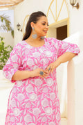 Plus Size Pink Floral Printed Cotton Kurti for Women