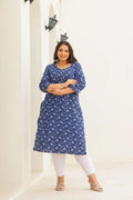 Plus Size Navy Blue Paisley Cotton Kurti for Women