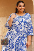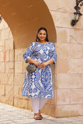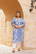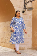 Plus Size White & Blue Ikat Print Cotton Kurti for Women