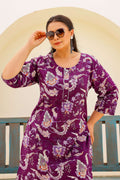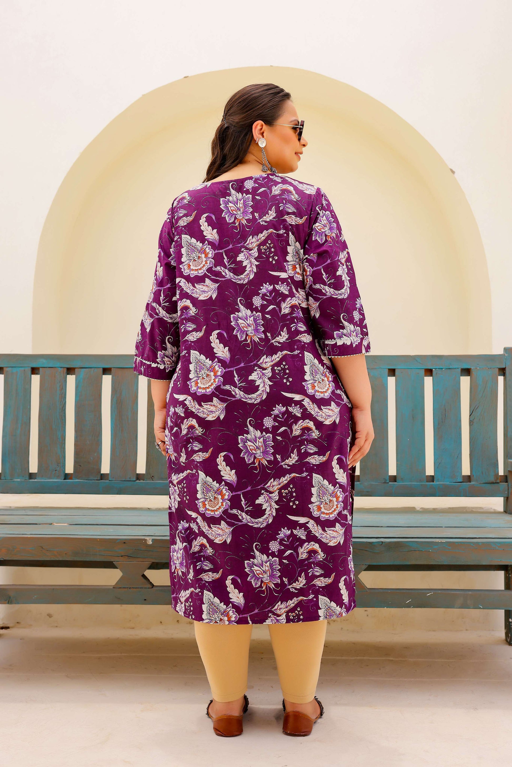 Plus Size Lavender Floral Printed Kurti β Soft Cotton Comfort