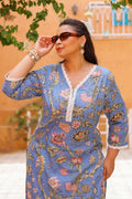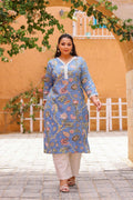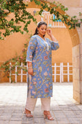 Plus Size Blue Floral Kurti β Elegant Cotton Comfort for Every Day