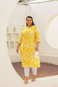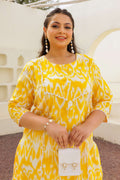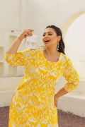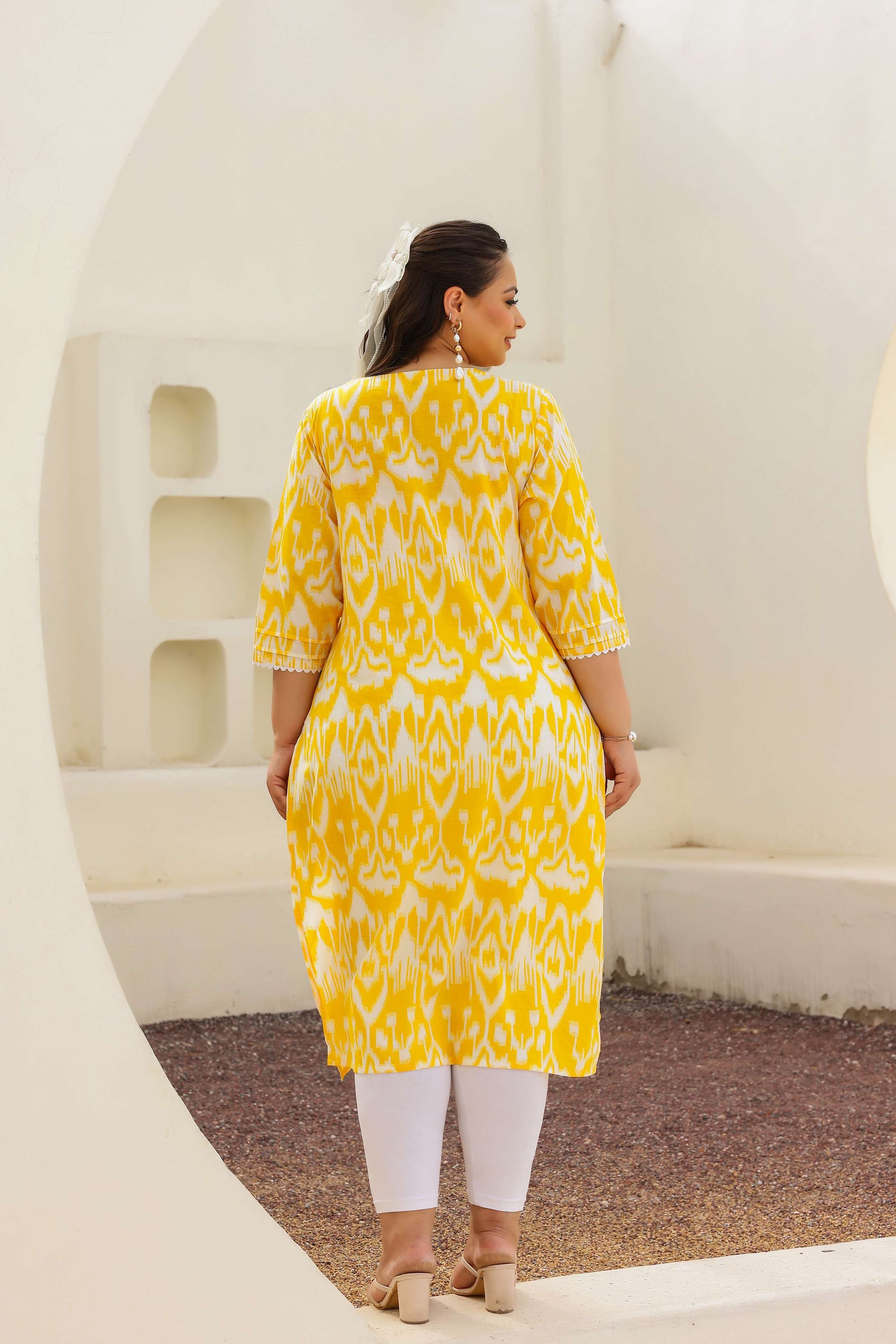 Bright Yellow Ikat Printed Kurta for Women | Plus Size Friendly | Everyday Comfort