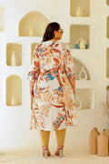 Bring a fresh, earthy vibe to your ethnic wardrobe with this ivory A-line kurta, featuring a vibrant bird and leaf print. The subtle pleats and button-down detailing add structure and charm to the flowy silhouette. Crafted for comfort, this kurta is ideal for warm days when style and ease go hand in hand.