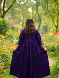 Purple Celebration-Ready Anarkali Dress with Contrast Print