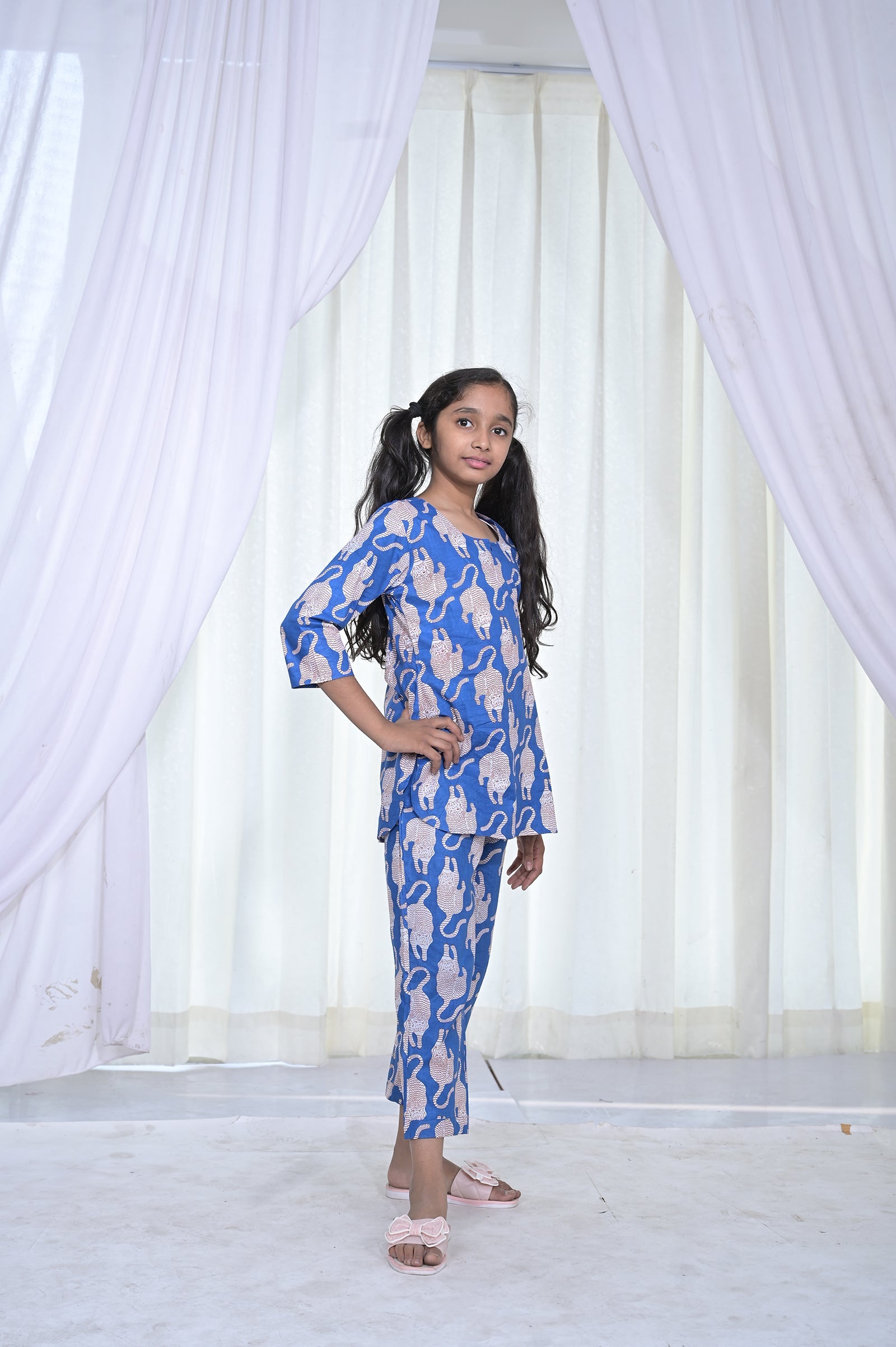 Let your little one stand out in our playful Blue Cat Print Cord Set, designed for comfort and style in equal measure. A perfect outfit for everyday adventures or casual outings.