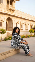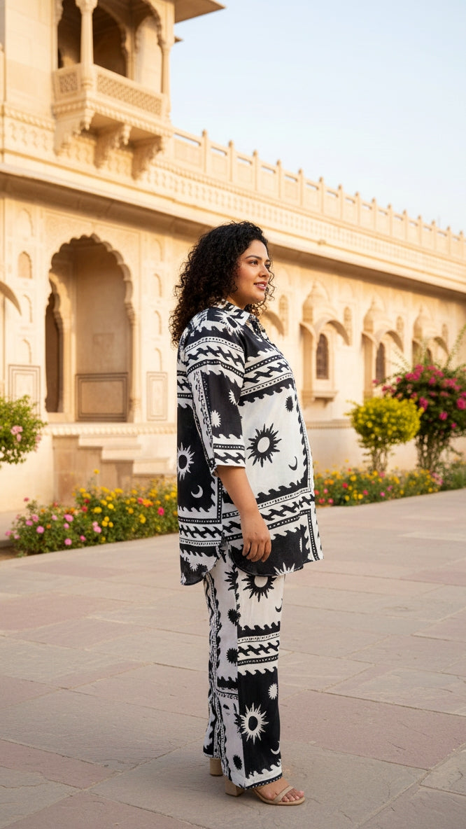 Plus Size Black Abstract Cotton Co-ord Set – Comfortable Everyday Wear for Women