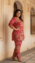 Plus Size Red Abstract Cotton Co-ord Set – Comfortable Everyday Wear for Women