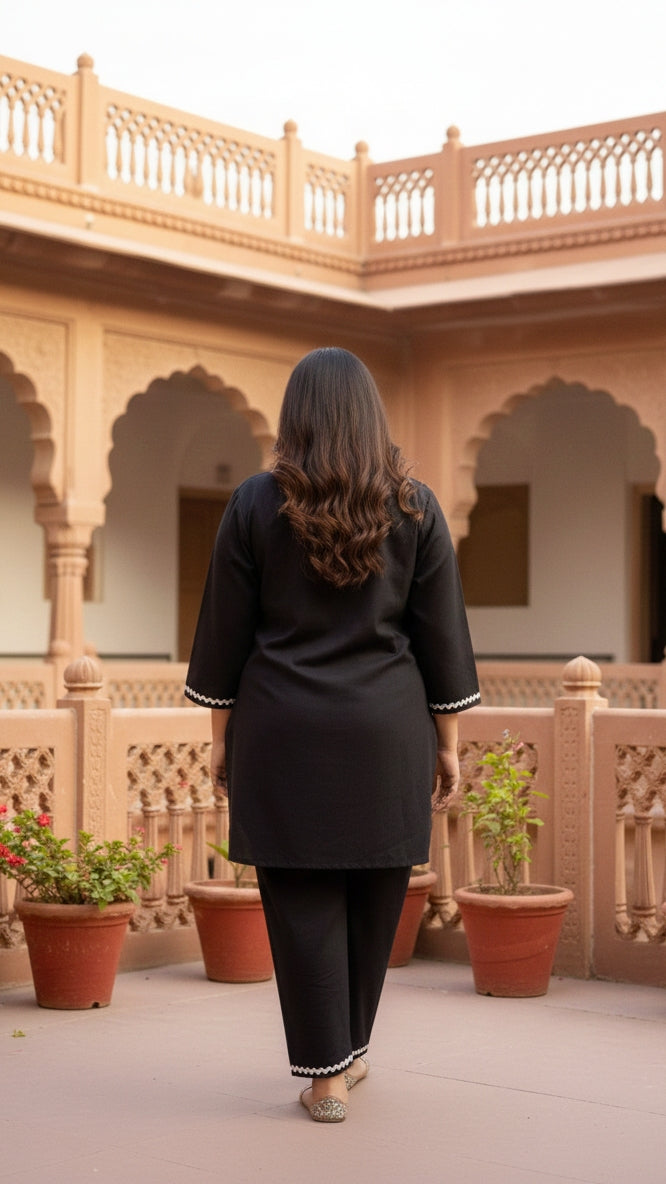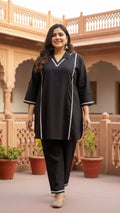Plus Size Solid Black Cotton Co-ord Set – Comfortable Everyday Wear for Women