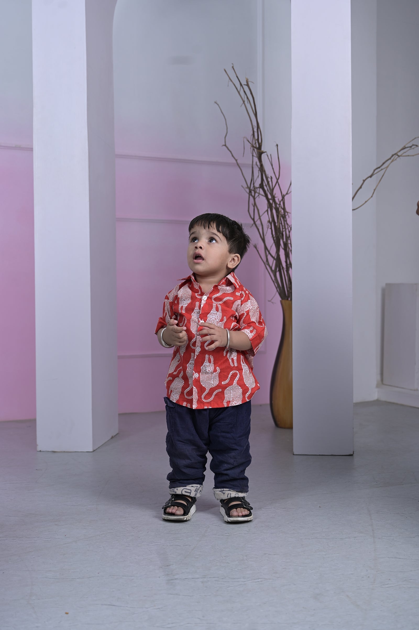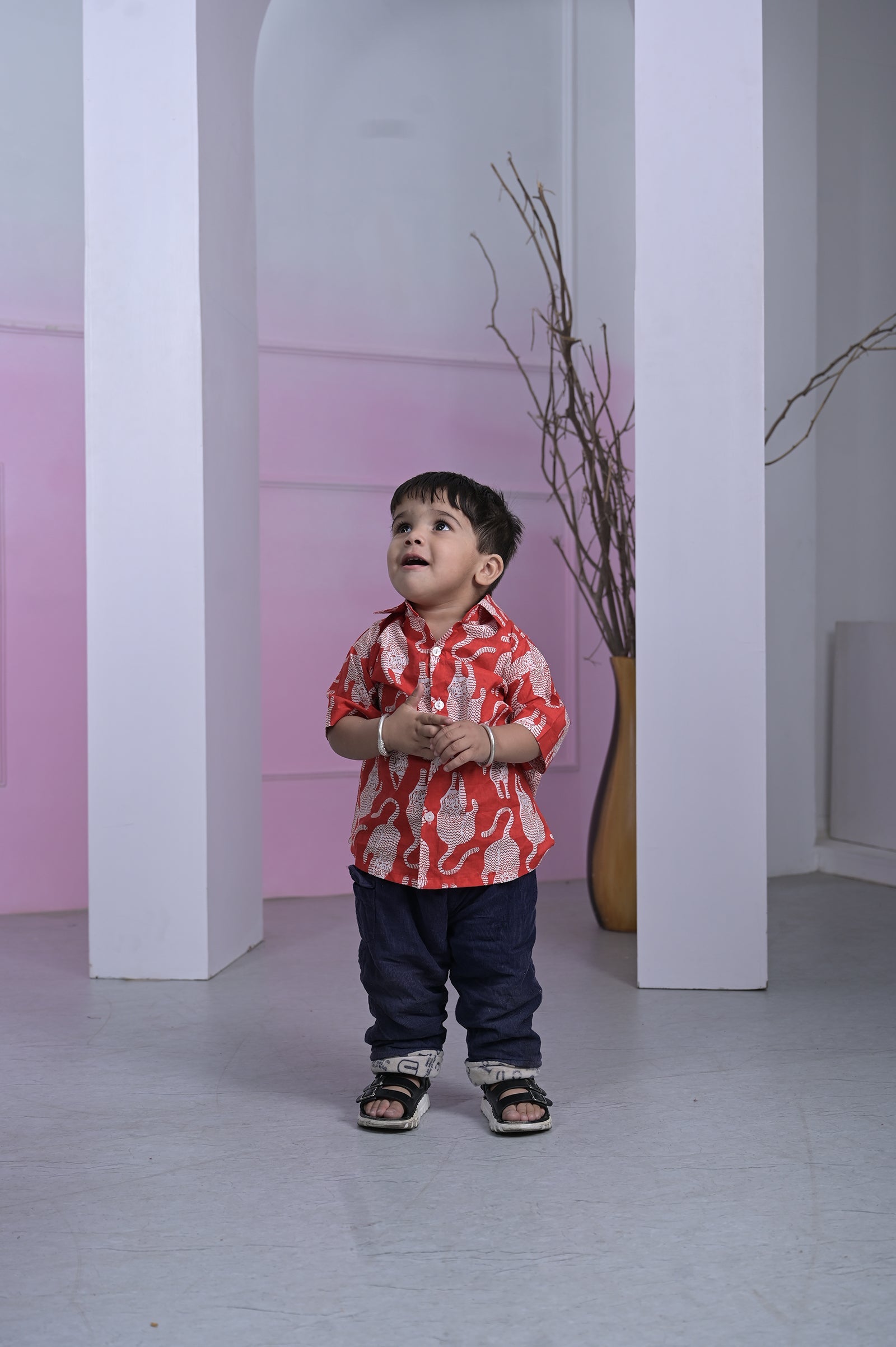 Crimson Cheetah Printed Boy’s Shirt – Red