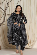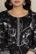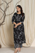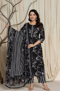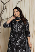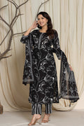 Elegant Black Floral Cotton Suit Set - Kurti, Pant & Dupatta