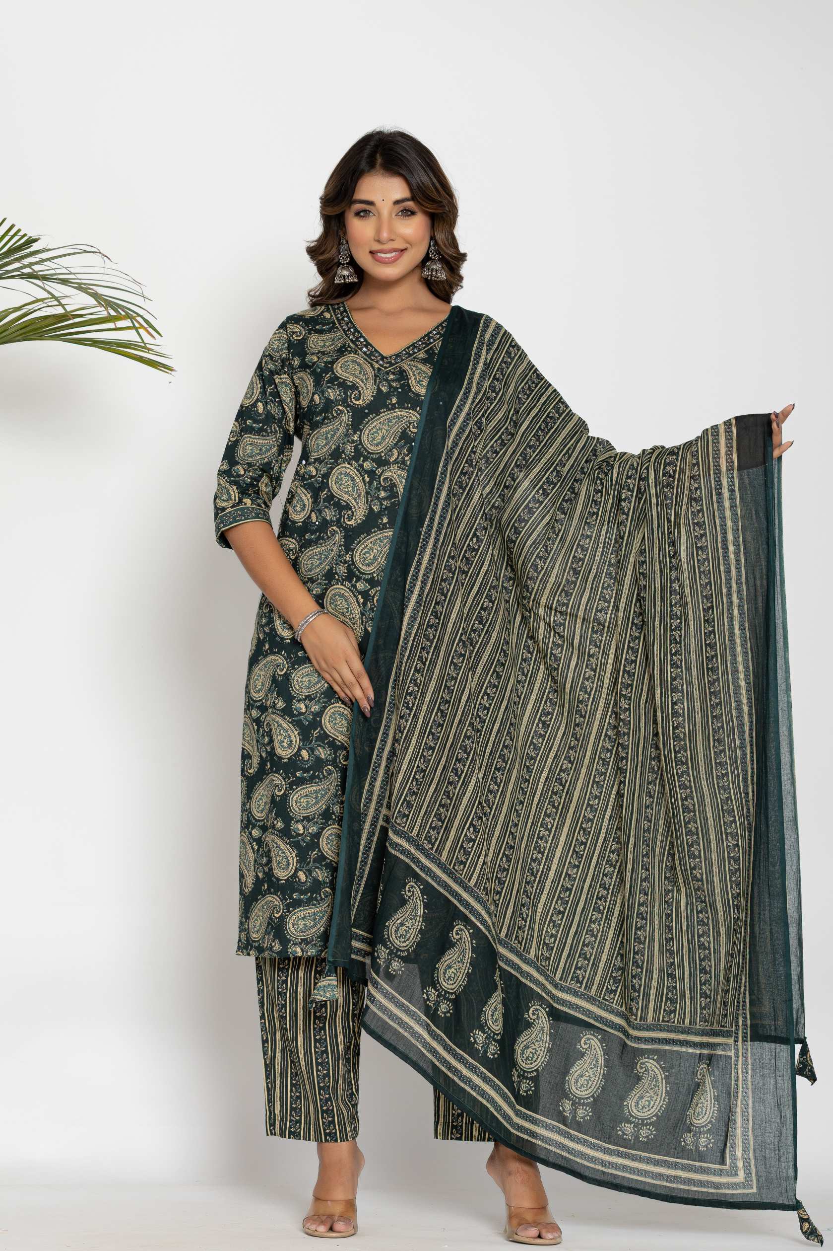 Step into elegance with this beautifully designed cotton kurta set, featuring intricate paisley prints and a traditional ethnic look. Crafted for comfort and style, this set is a must-have for festive occasions, office wear, and casual outings.