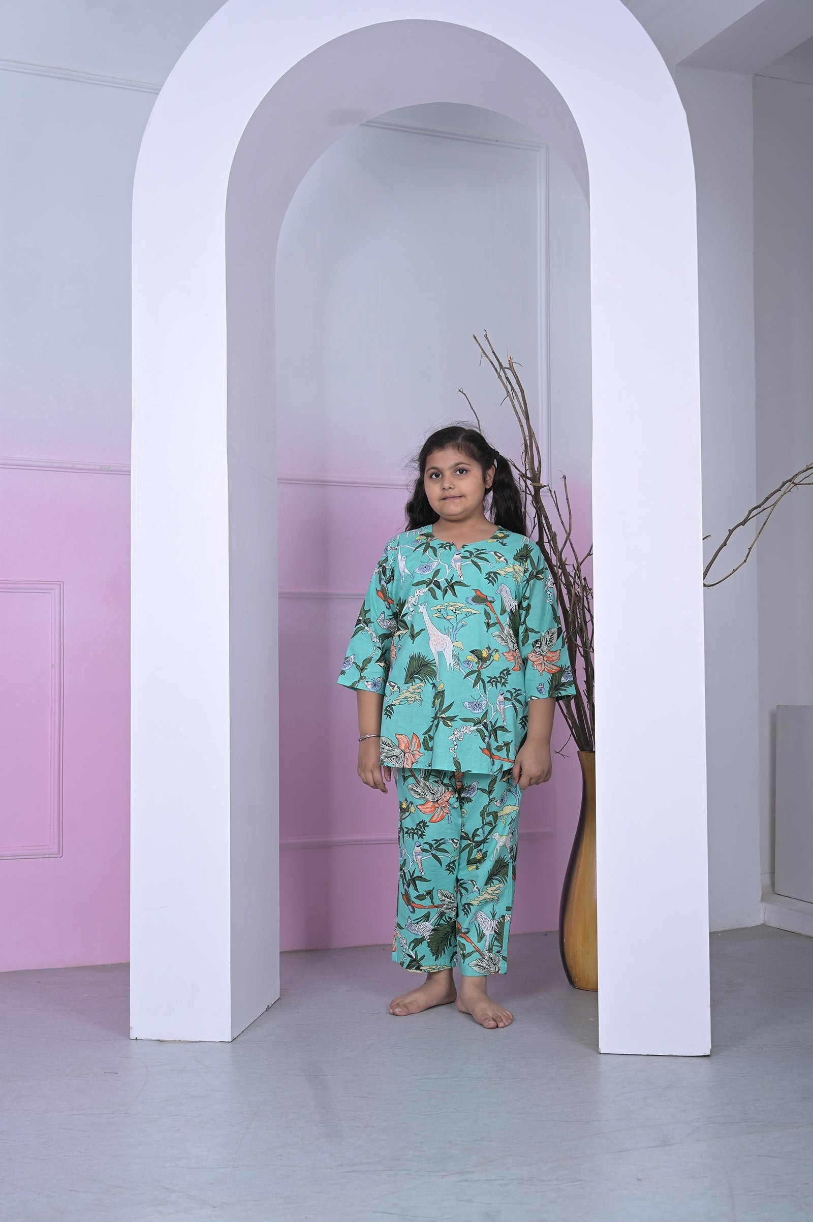 Brighten up her day with this fresh lemon yellow Chikankari girls coord set. Designed with soft cotton fabric and elegant embroidery, it's perfect for festive occasions or casual outings with a touch of tradition.