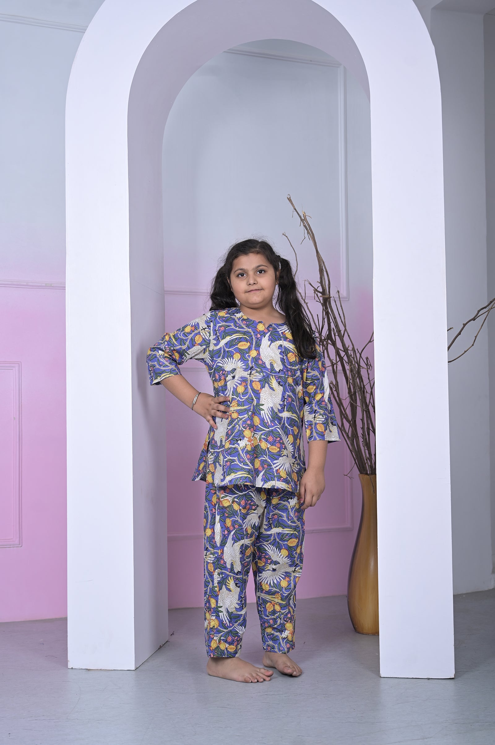 This mint green coord set is elegance redefined for young girls. Its subtle hue and floral hand embroidery give a charming ethnic look suitable for family events or traditional outings.