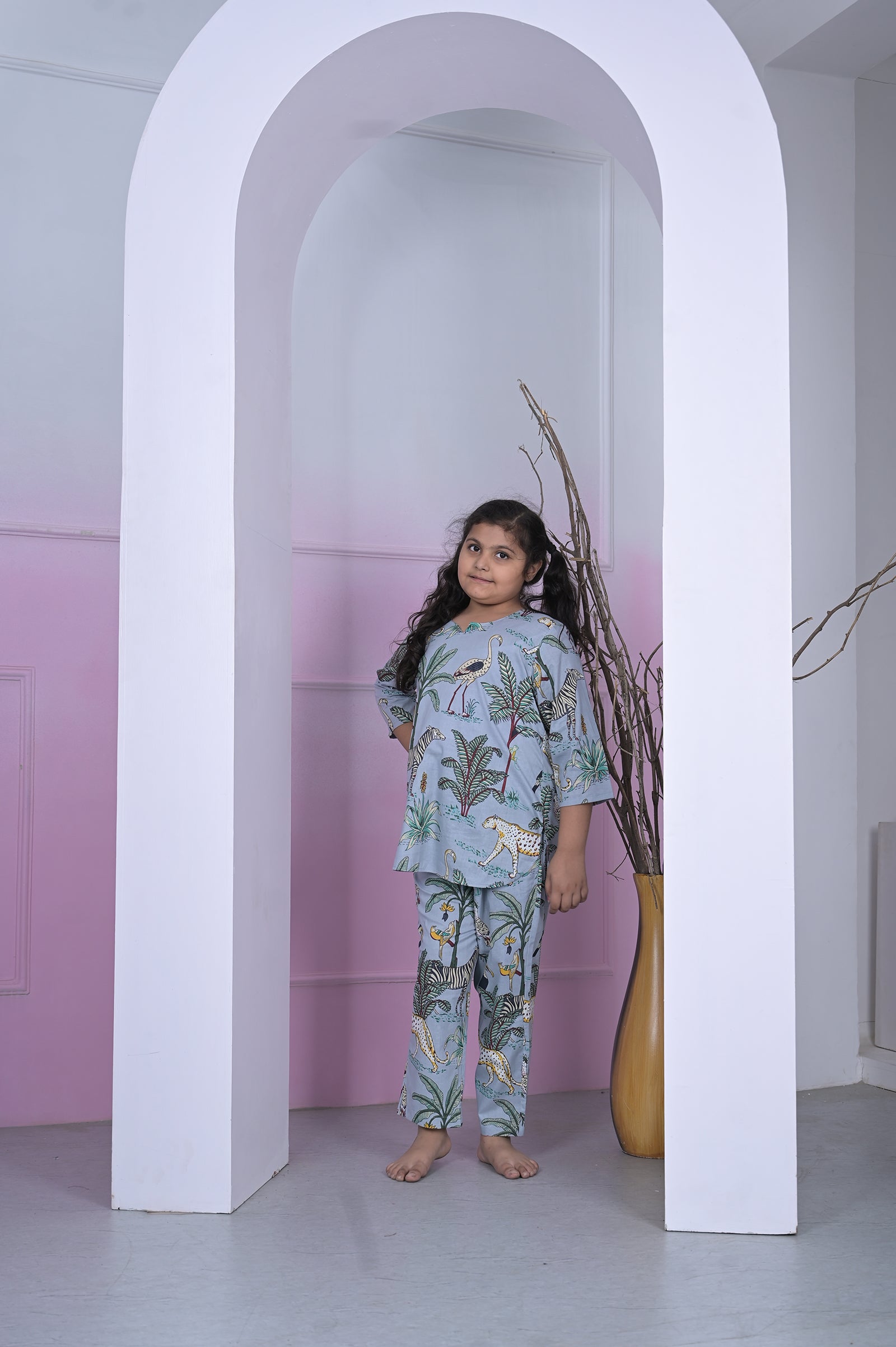 Soft, breezy, and beautifully embroidered – this sky blue Chikankari coord set is perfect for sunny days. Let her enjoy the traditional art of embroidery in a contemporary design.