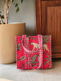 Bring a touch of the wild to your wardrobe with our Handcrafted Jungle-Print Tote Bag, designed to cater to the adventurous spirit of modern Indian women. Featuring a chic pink base with intricate jungle patterns of flora and fauna, this tote is ideal for casual outings, shopping sprees, or any day you want to stand out. The unique design effortlessly blends traditional artistry with a contemporary edge, making it a versatile accessory for all occasions.