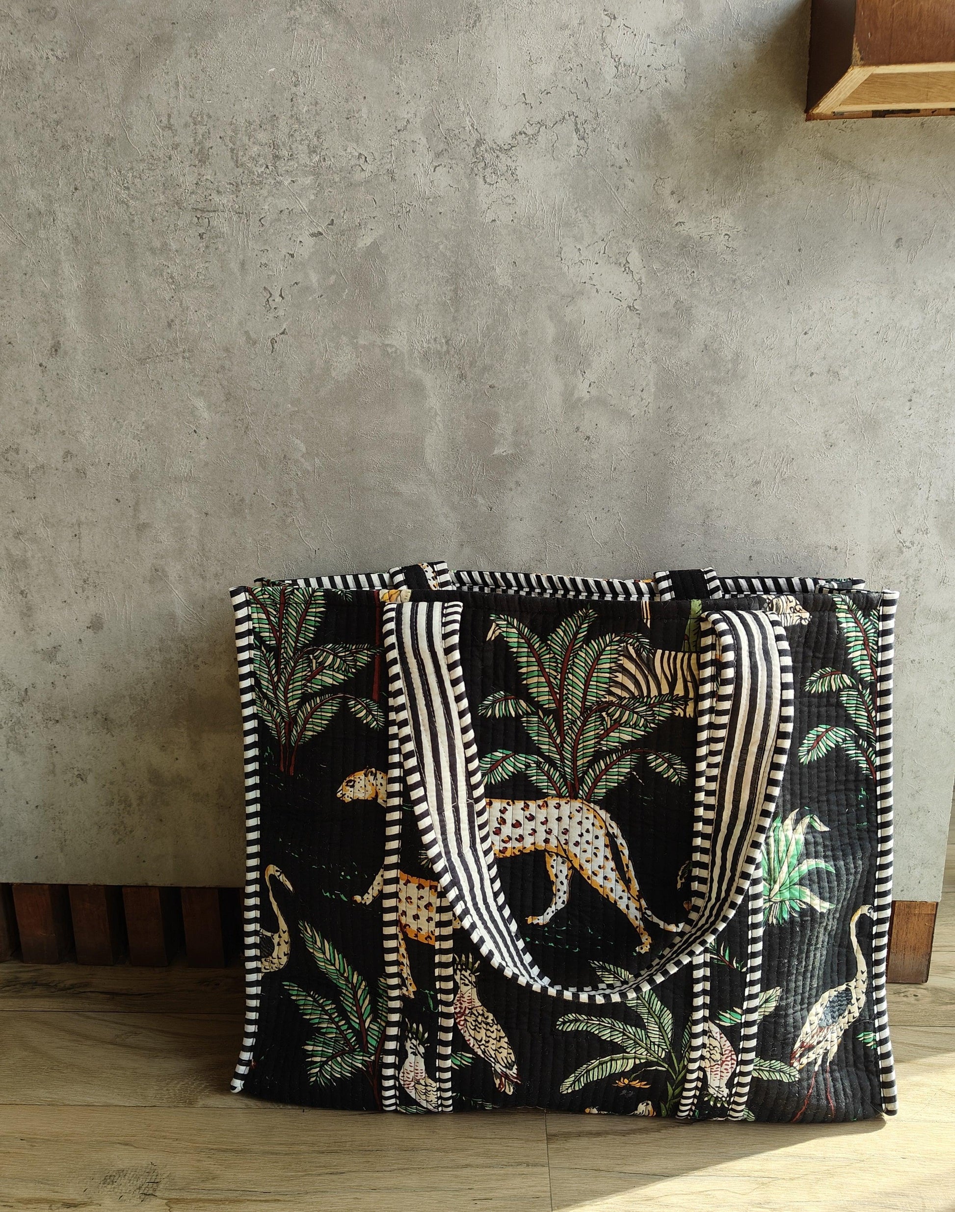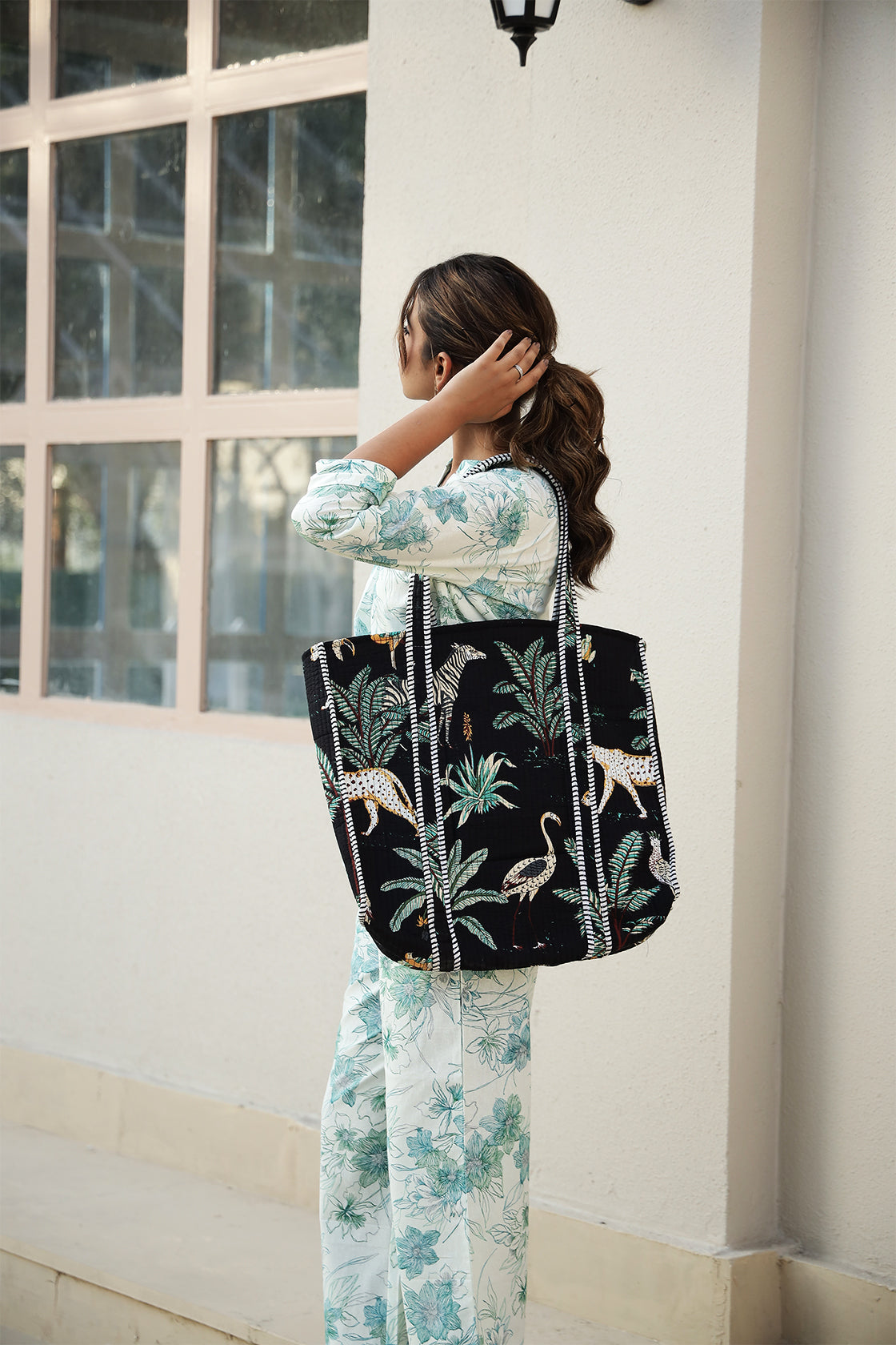 Handcrafted Jungle-Print Tote Bag for Indian Women – Eco-Friendly, Spacious & Stylish