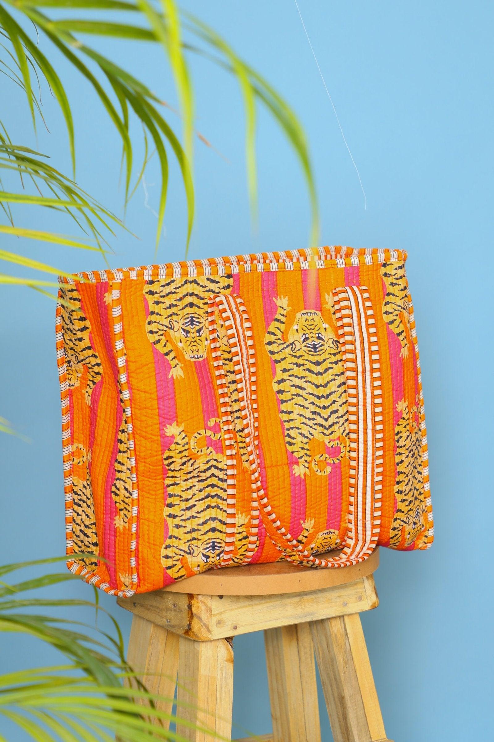 Step out in style with our Handcrafted Tiger-Print Tote Bag, designed specifically for the modern Indian woman who loves to make a bold statement. With its vibrant orange, yellow, and pink hues, this tote is perfect for both casual outings and special occasions. The tiger print adds a touch of fierceness to your look, while the spacious interior makes it functional for shopping, travel, or daily use.