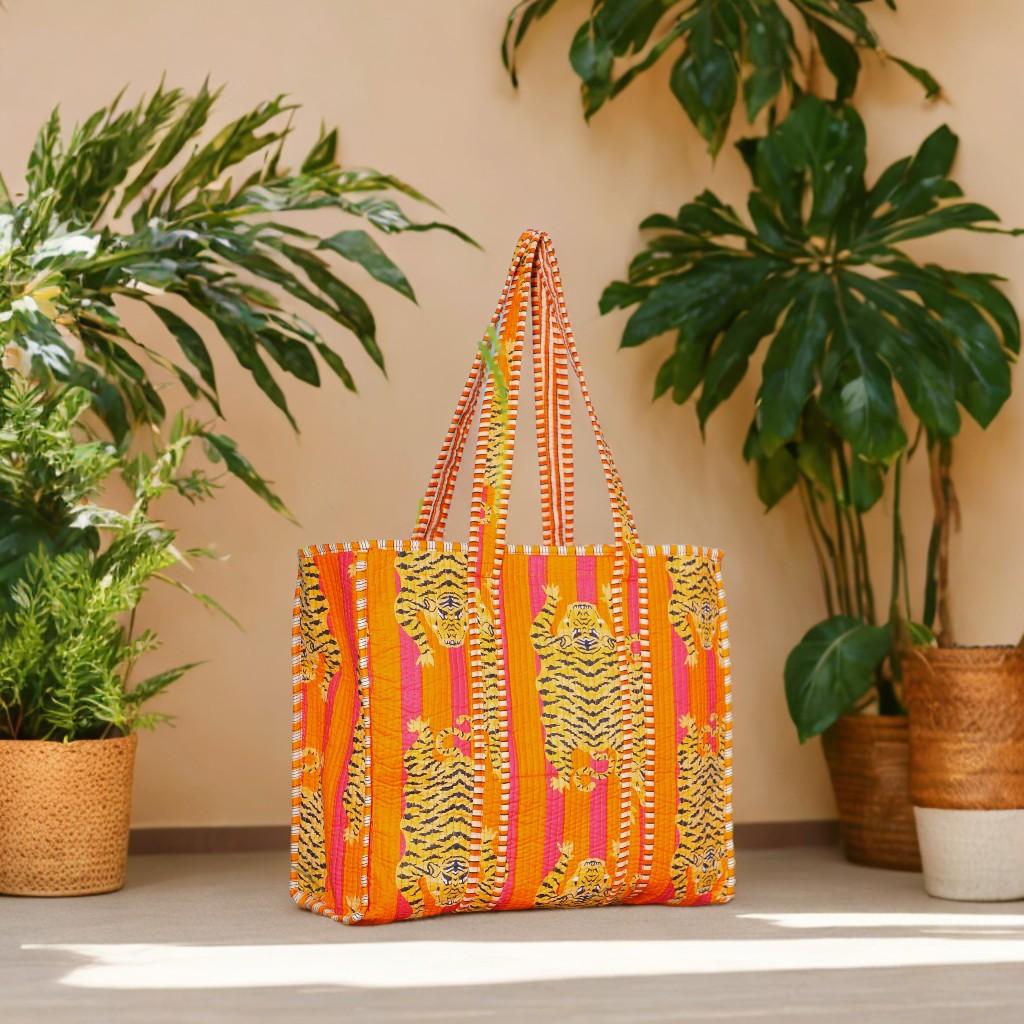 Handcrafted Tiger-Print Tote Bag – Stylish, Spacious & Durable