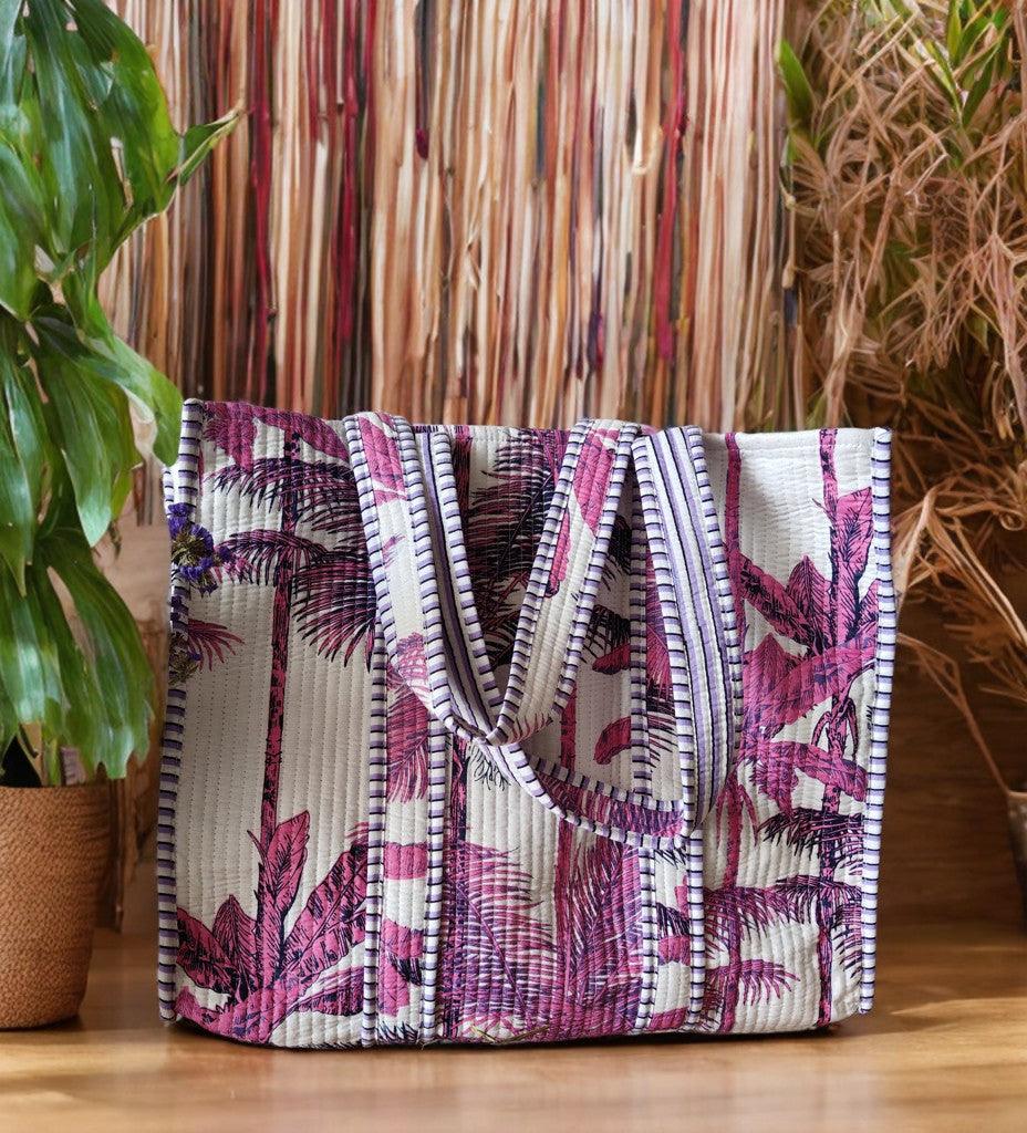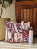 Elevate your style with our Handcrafted Tropical-Leaf Print Tote Bag, designed for women who embrace both elegance and practicality. Featuring an intricate tropical print with lush pink leaves, this tote is a chic addition to any outfit, from casual outings to ethnic wear. Its generous size makes it the perfect companion for everyday needs, whether you’re running errands, heading to work, or enjoying a weekend getaway.
