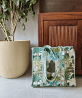 Elevate your daily look with our Handcrafted Tropical-Print Tote Bag, meticulously designed for the modern Indian woman who values both style and functionality. With vibrant green hues and intricate botanical patterns, this tote is perfect for casual outings, shopping, or even special occasions. The nature-inspired design brings an earthy, refreshing feel to any outfit, whether you're embracing traditional Indian wear or contemporary fashion.