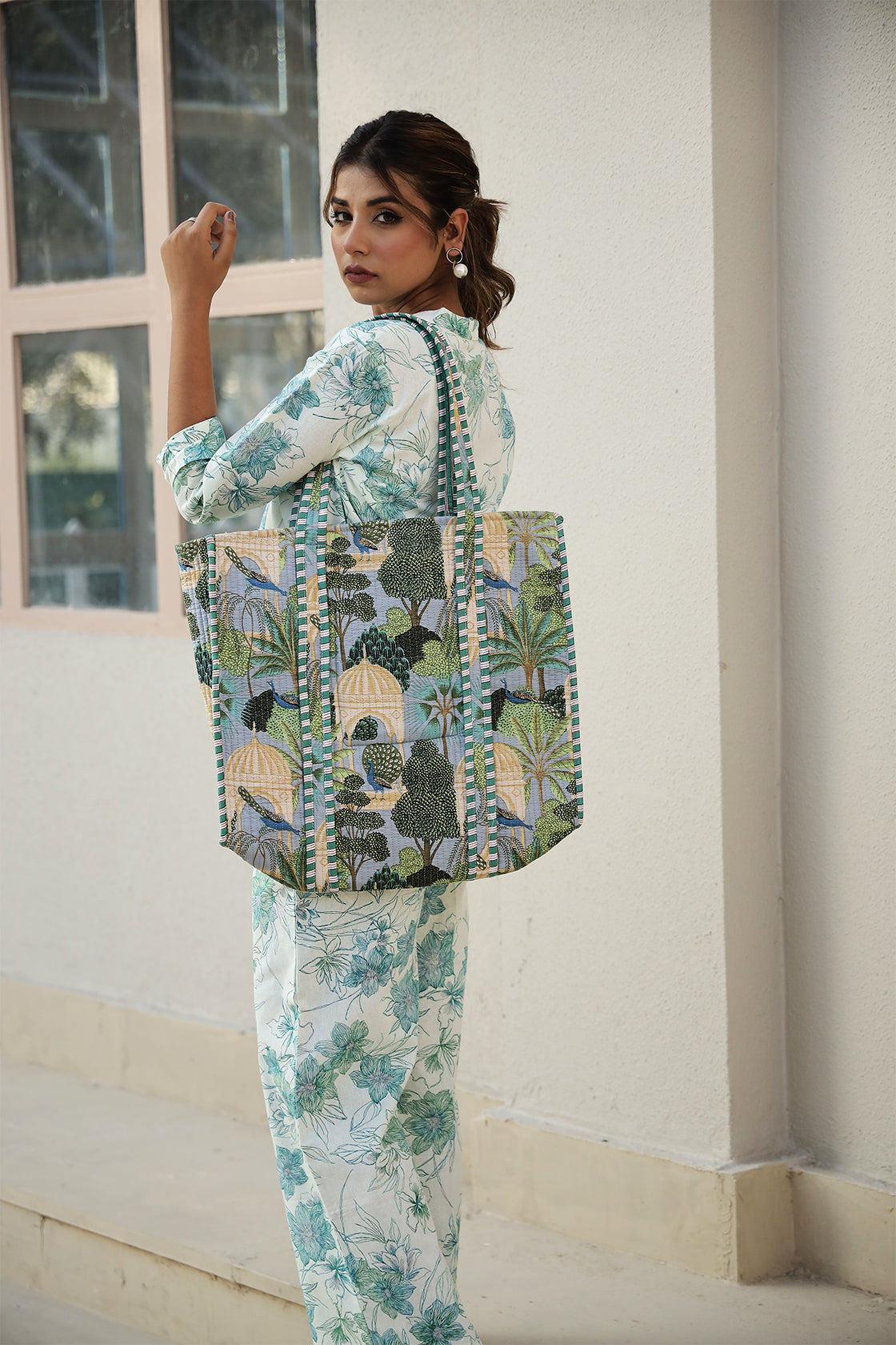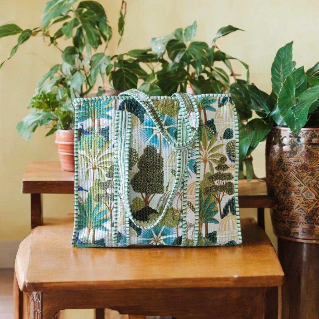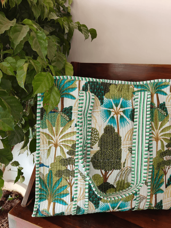 #ToteBagForWomen #TropicalPrintBag #HandcraftedBagsIndia #EcoFriendlyBags #StylishToteForIndianWomen #BotanicalPrintBag #ShoppingBagsIndia #EthnicBagsOnline #WomenAccessoriesIndia #SustainableFashion