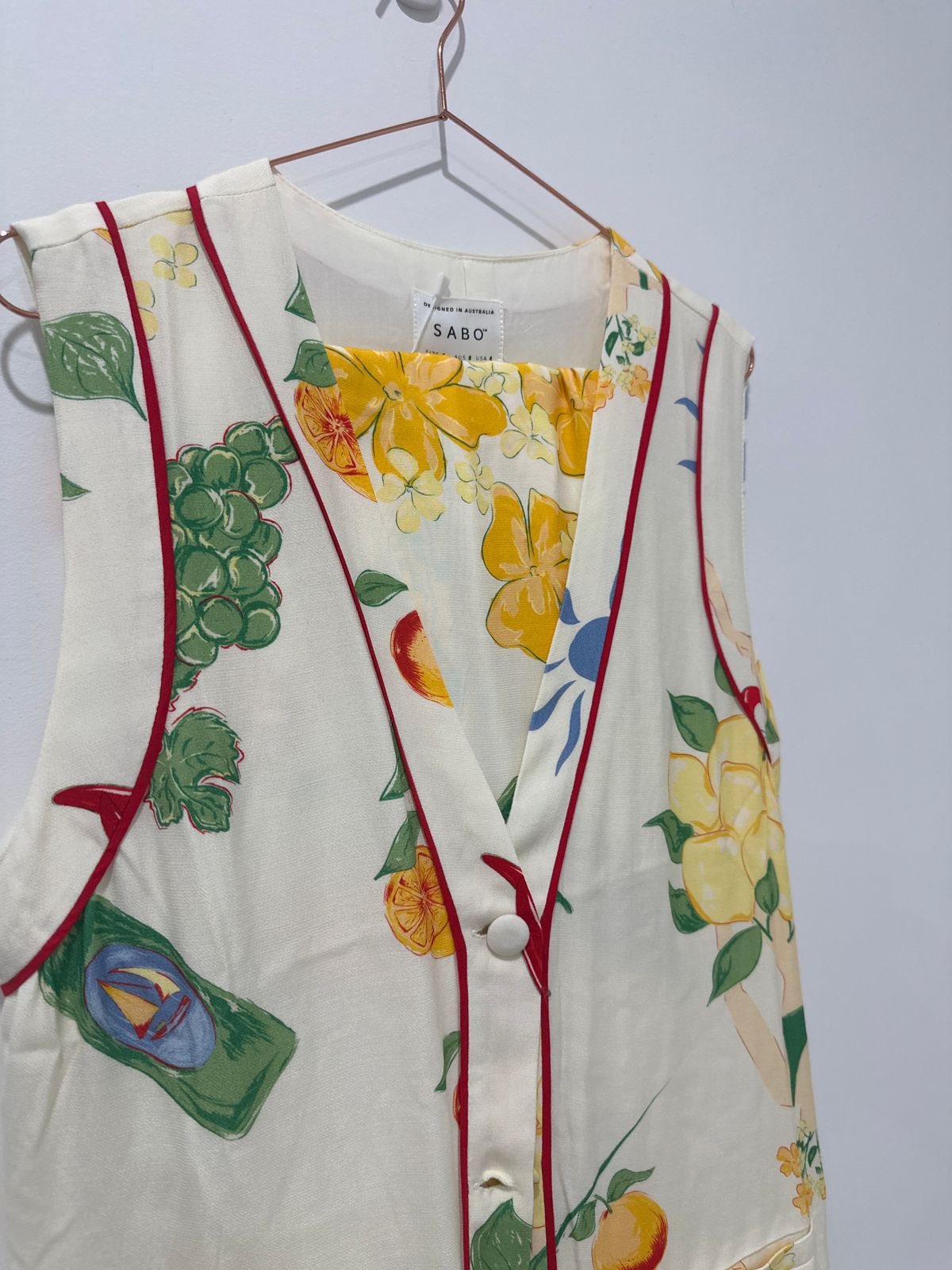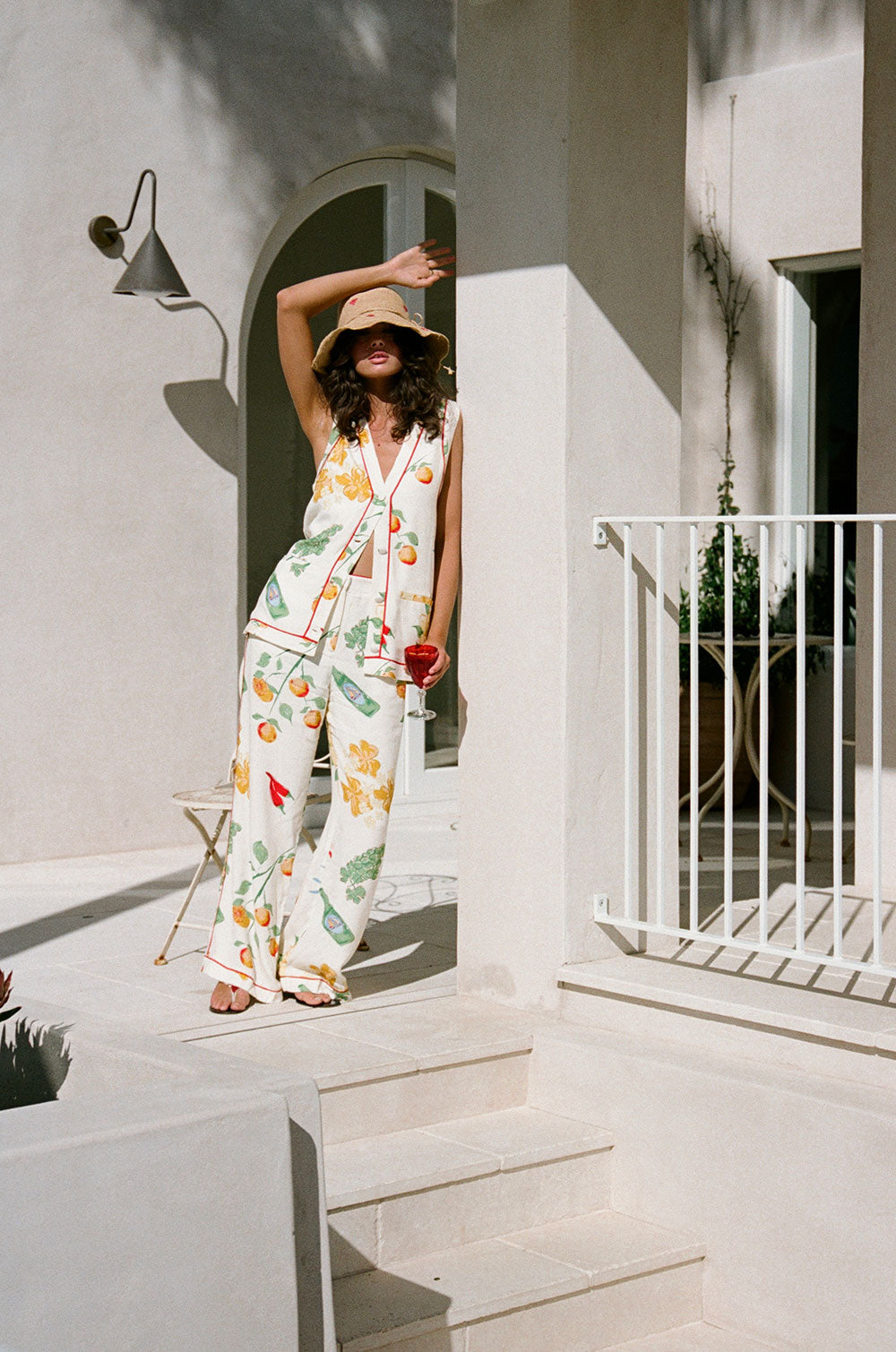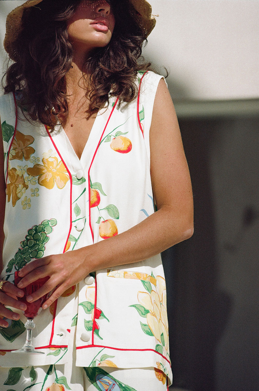 The effortlessly stylish Izabelle Cord set is made from a luxurious viscose rayon fabric with our exclusive Aesta print. It is a relaxed style featuring a plunging neckline with large covered buttons, contrast red bind details and a longline hem. Complete the look with the Izabelle Pants!