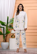 The relaxed-fit shirt features a classic button-down front with full sleeves, paired with straight-cut pants adorned with matching botanical brushwork. Ideal for brunches, vacations, or casual get-togethers, this co-ord set offers effortless elegance while making a sustainable, handcrafted statement.