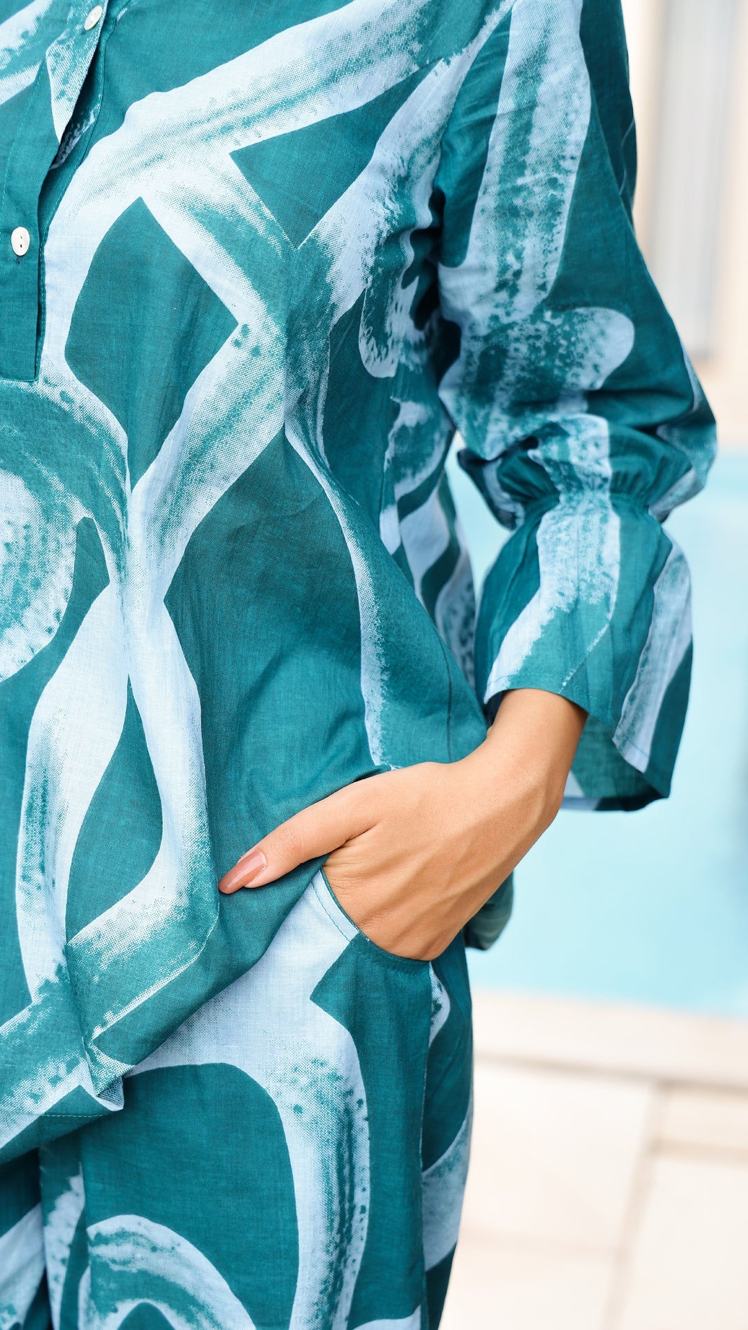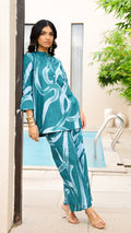 Teal Tide Co-ord Set – Aqua Abstract Cotton Set