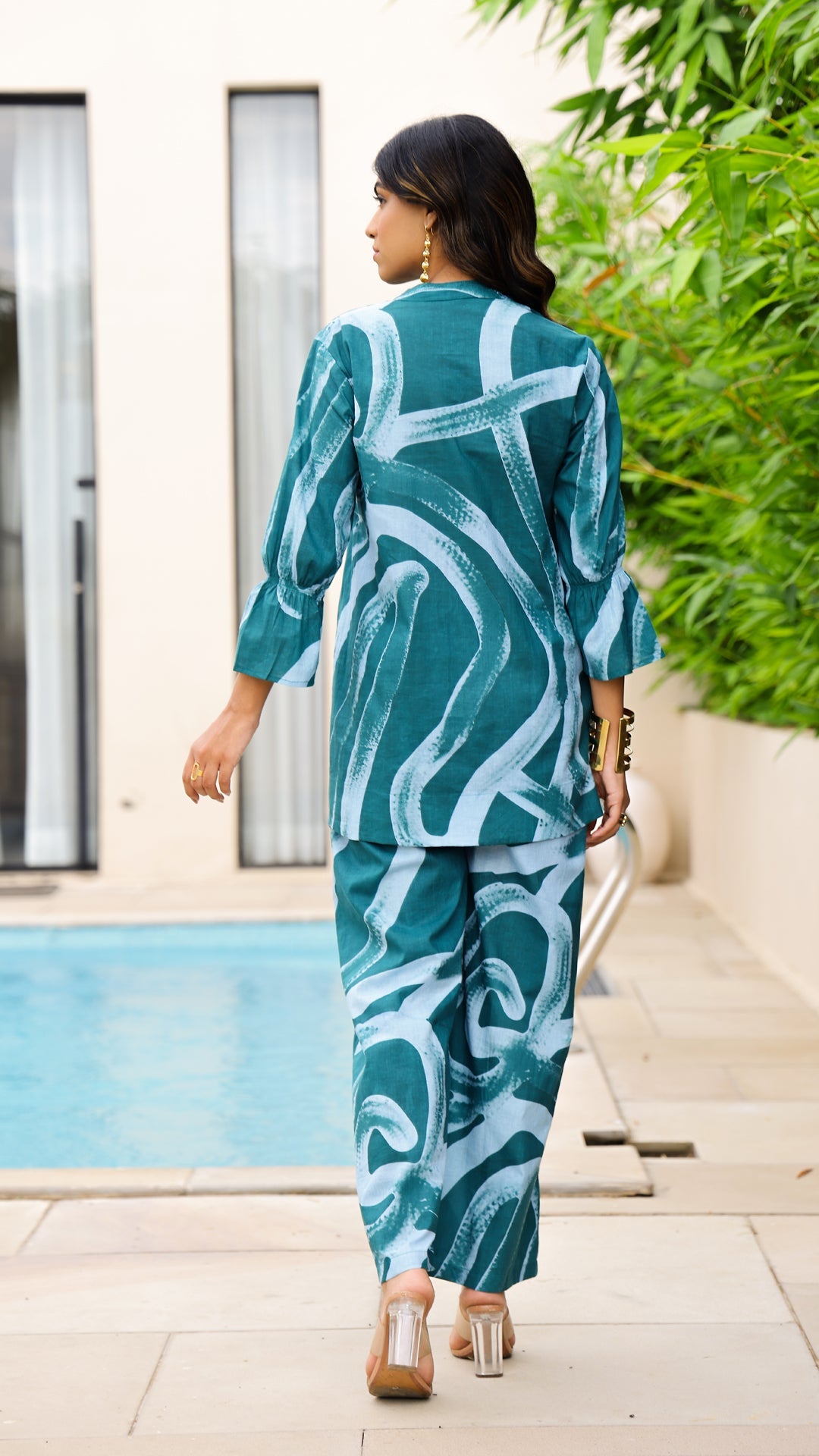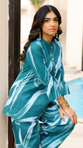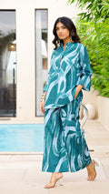 Turn heads in our Teal Tide co-ord set, designed with abstract water-inspired prints. Made in breathable cotton, it offers a breezy fit that keeps you comfortable yet stylish all day long.