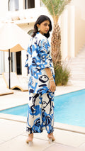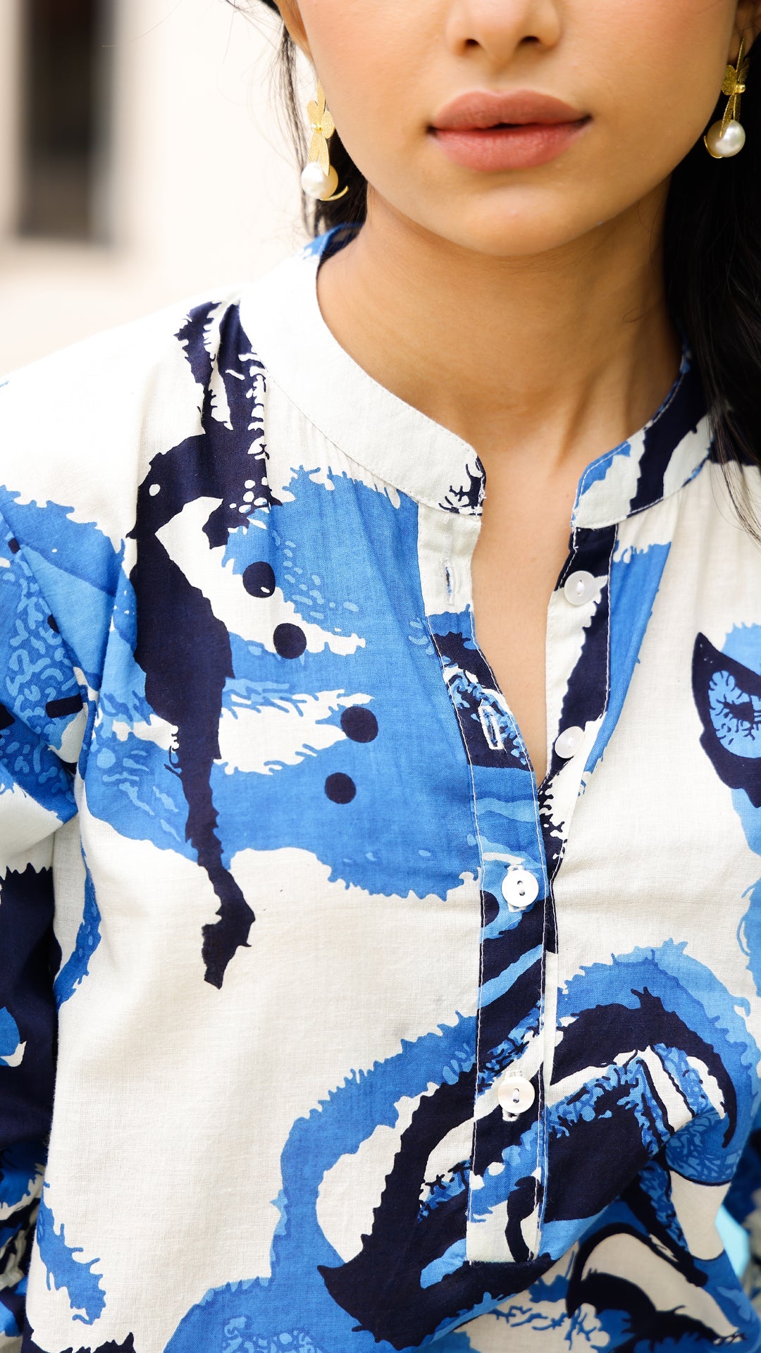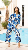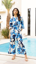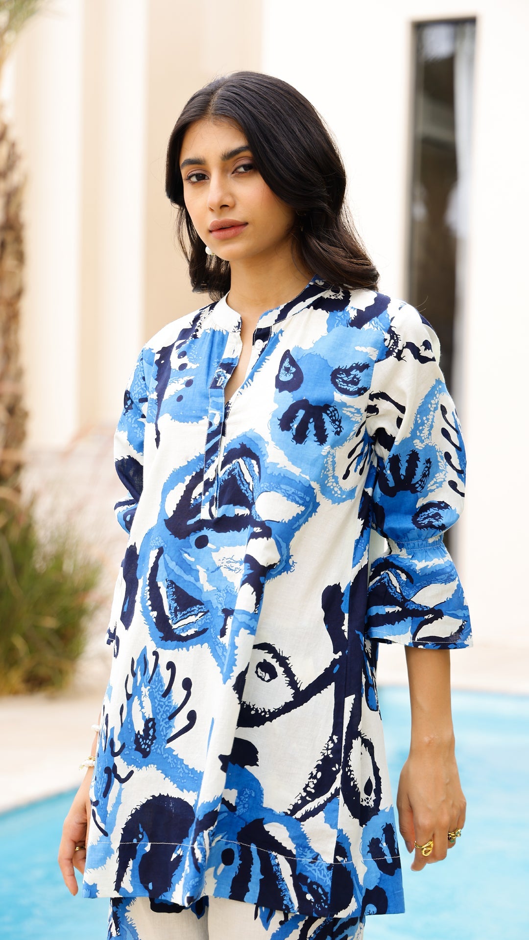 Dive into effortless style with our Ocean Breeze Co-ord Set featuring abstract blue floral prints on a crisp white base. Lightweight and flowy, it's perfect for sunny days and breezy evenings.