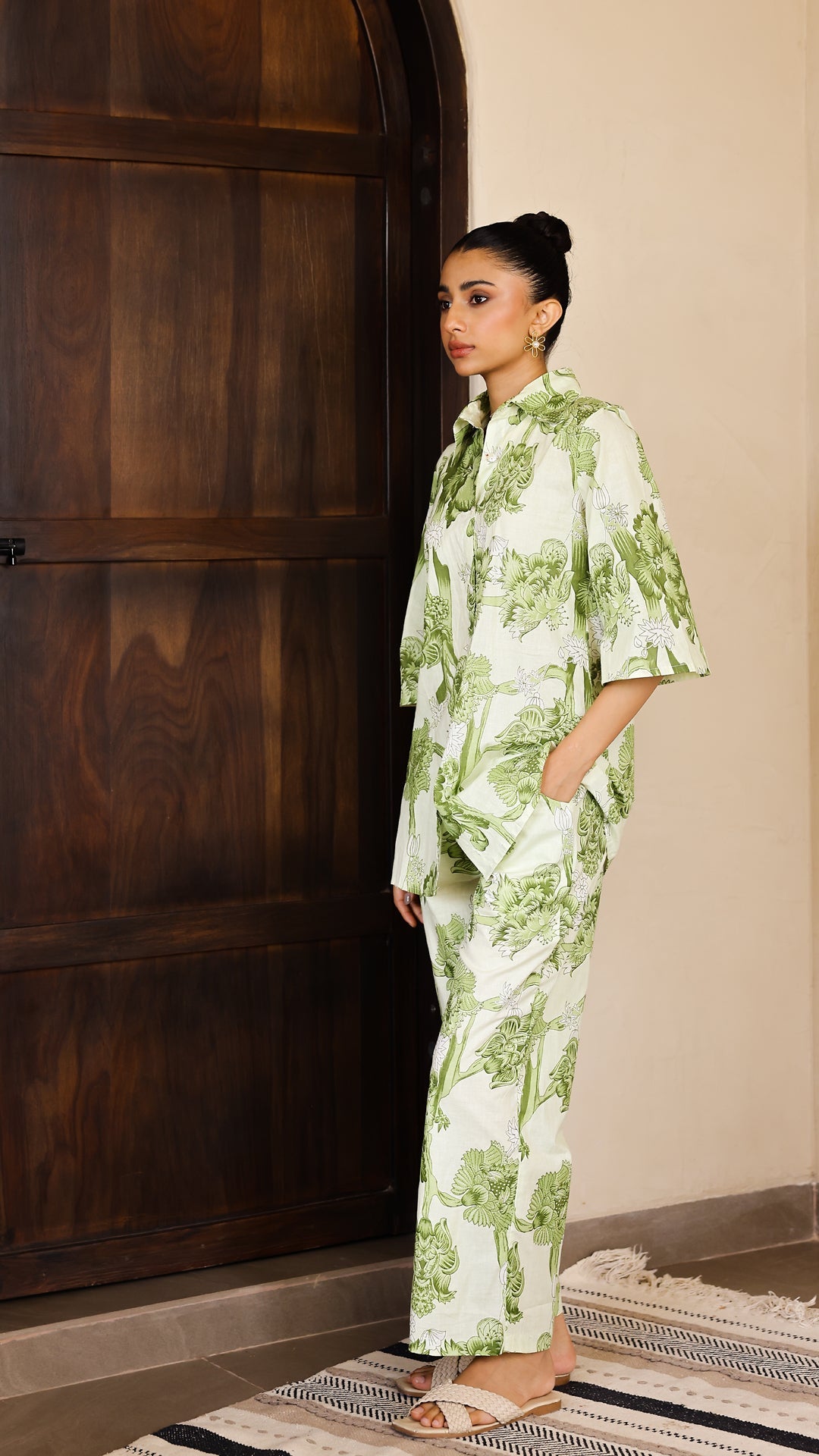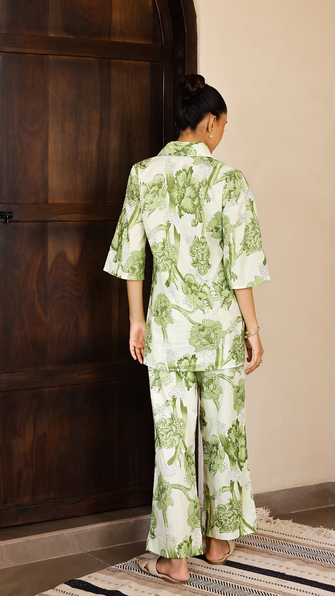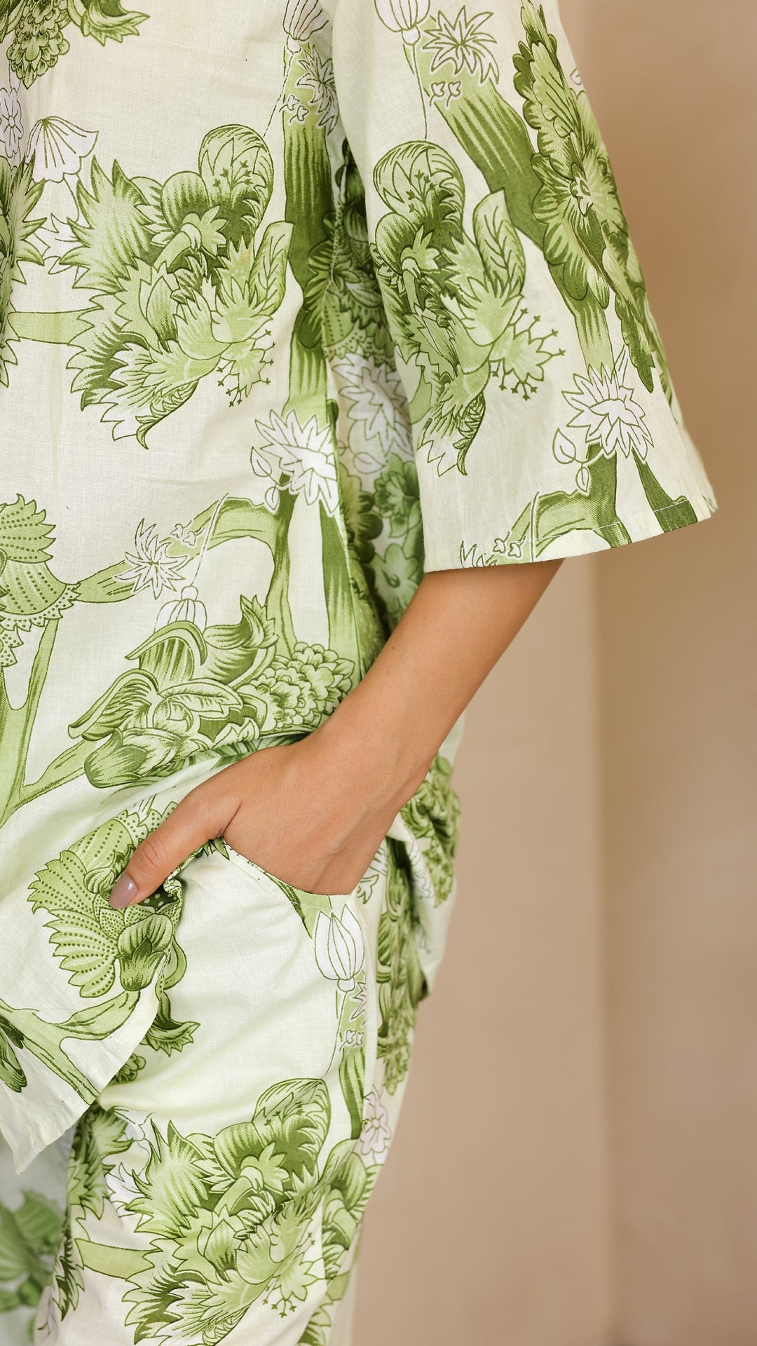 Olive Green Floral Co-Ord Set – Cotton Casual Chic