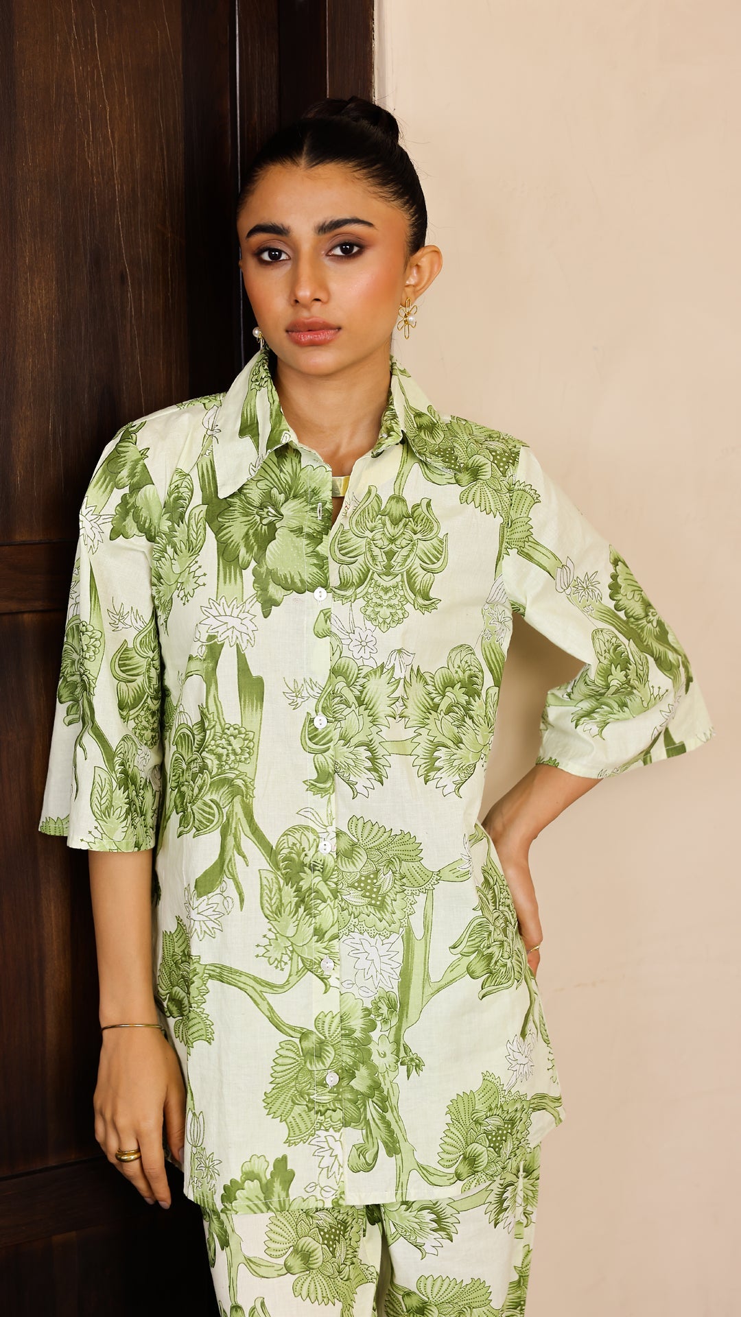 Stay effortlessly stylish in our Olive Green Floral Co-Ord Set. Designed in soft cotton with nature-inspired prints, this breezy two-piece set features a collared shirt and straight pants—ideal for sunny outings, work-from-home looks, or casual brunches.