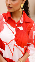 Make a vibrant statement with our Bold Red Petal Co-Ord Set. Designed in breathable cotton, this oversized floral two-piece features vivid red and white petal prints on a collared shirt and relaxed-fit pants. Ideal for resort days, casual brunches, or standout everyday wear.