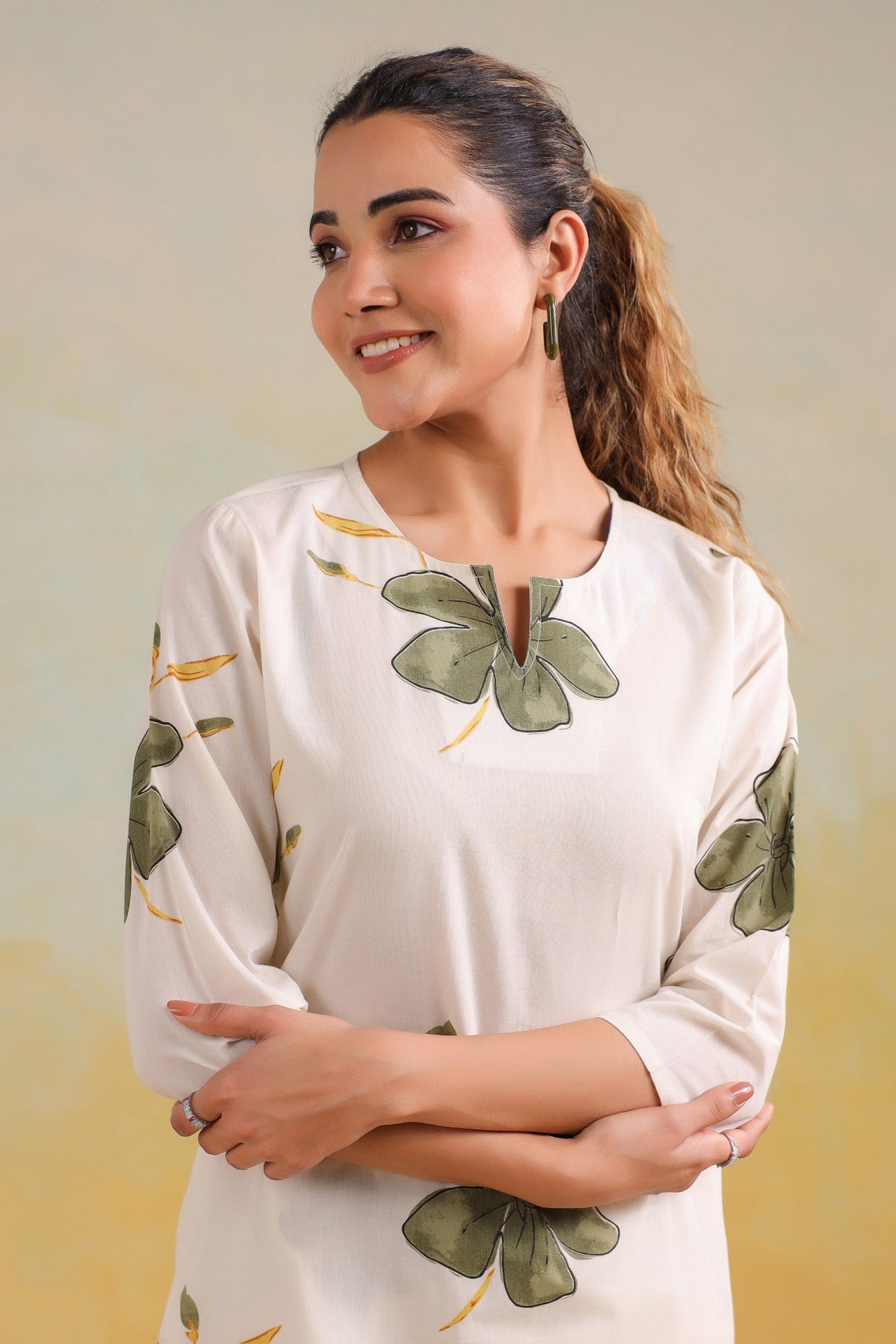 Redefine timeless elegance with our Graceful Floral Co-ord Set, a sophisticated ensemble designed for the modern woman. Featuring a delicate botanical print on a soft, neutral canvas, this set radiates effortless charm. The elegantly tailored tunic pairs beautifully with flowy, relaxed-fit trousers, offering both comfort and refinement.