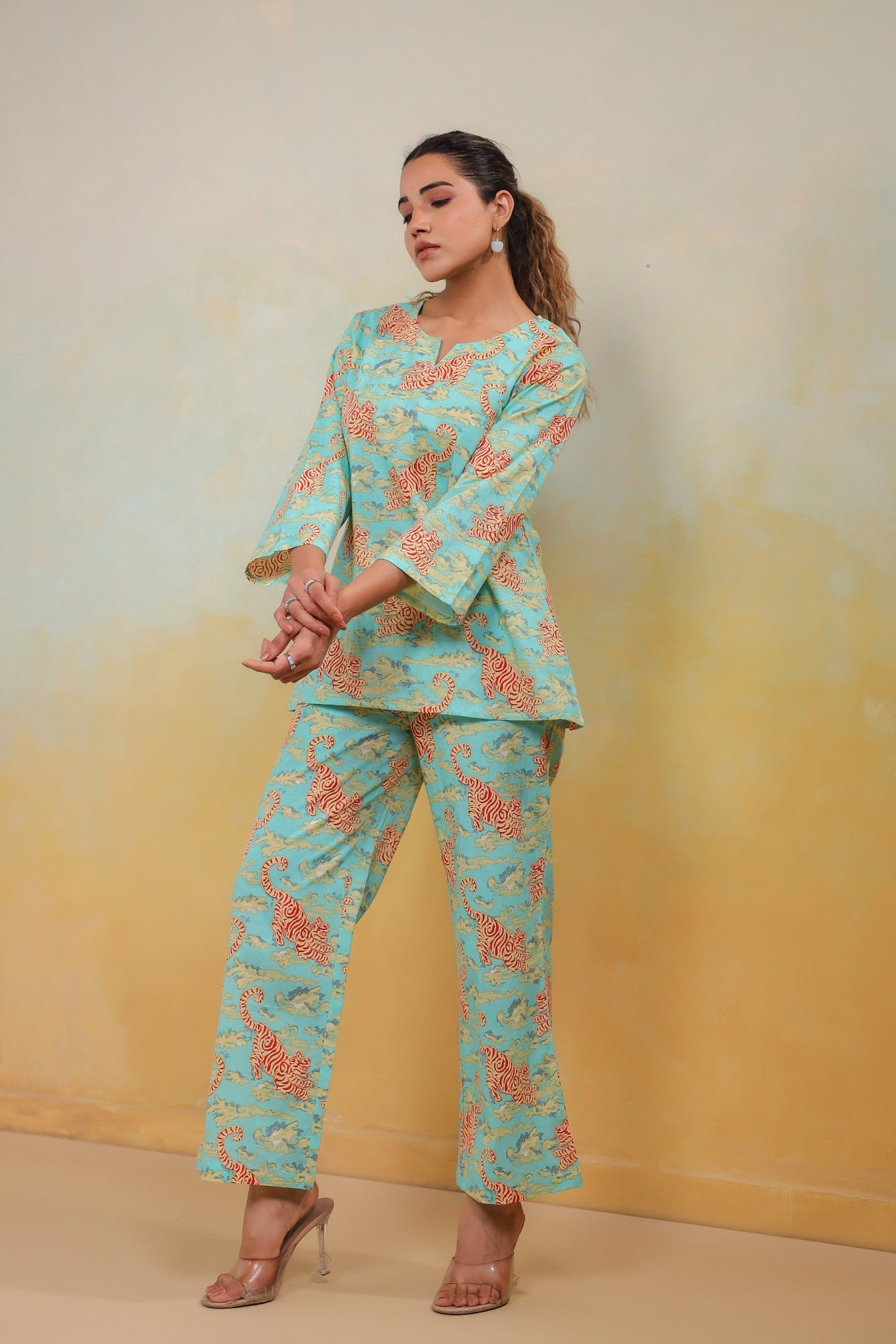 Regal Tiger – Luxe Printed Co-ord Set in Aqua