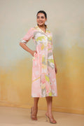 Step into a world of delicate charm with the Blush Reverie Midi Dress – a symphony of soft pastels and ethereal floral artistry. Designed for those who appreciate elegance in its purest form, this button-down midi dress features a structured collar, cuffed sleeves, and a flattering A-line silhouette. The subtle watercolor-inspired print enhances its romantic aesthetic, making it a versatile wardrobe essential.