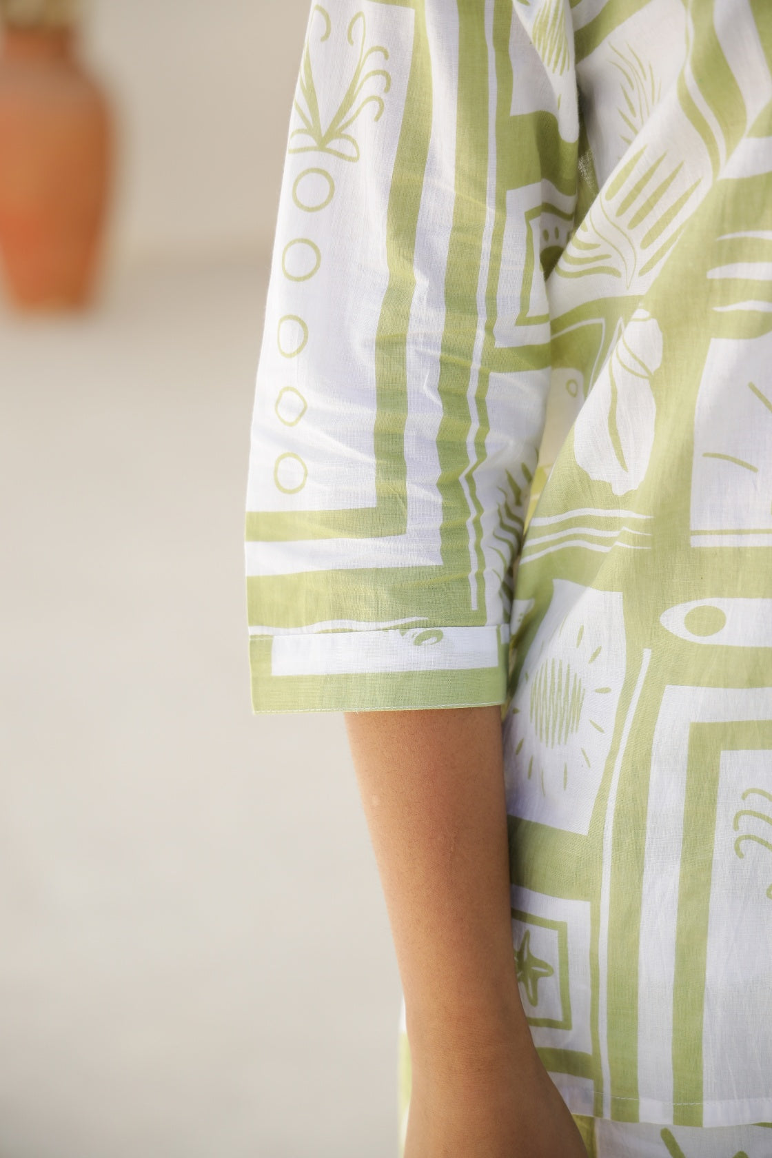 Step up your fashion game with this Abstract Print Co-Ord Set, featuring a relaxed-fit button-down shirt and flared pants. The soft cotton fabric ensures breathability and comfort, making it an ideal choice for both casual and semi-formal occasions. With its contemporary print and structured silhouette, this outfit exudes modern elegance and effortless style.